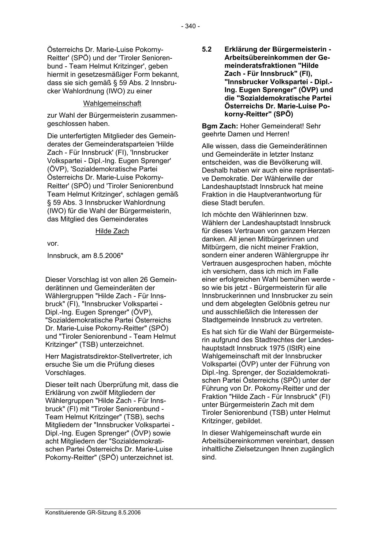 Bgm Zach: Hoher Gemeinderat! Sehr