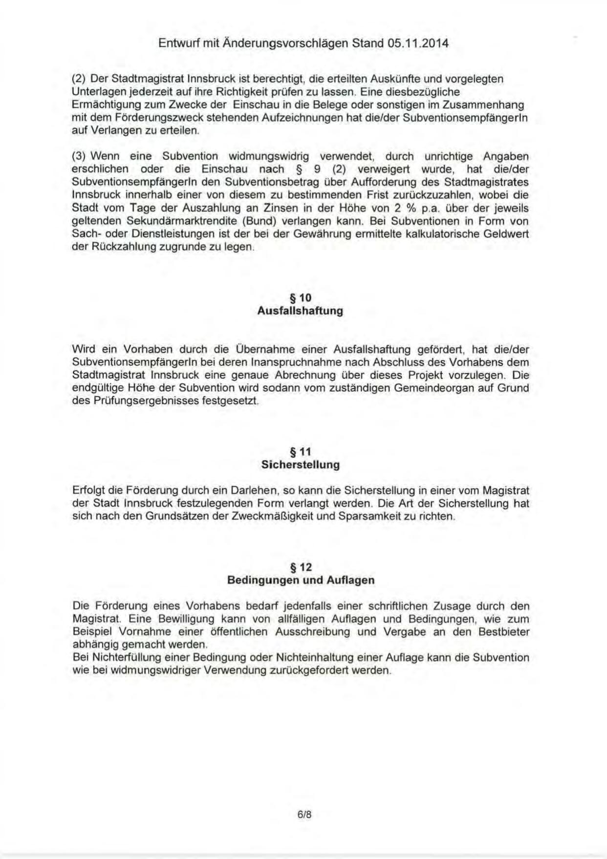 Stadtmagistrat Innsbruck eine genaue Abrechnung über dieses Projekt vorzulegen . Die