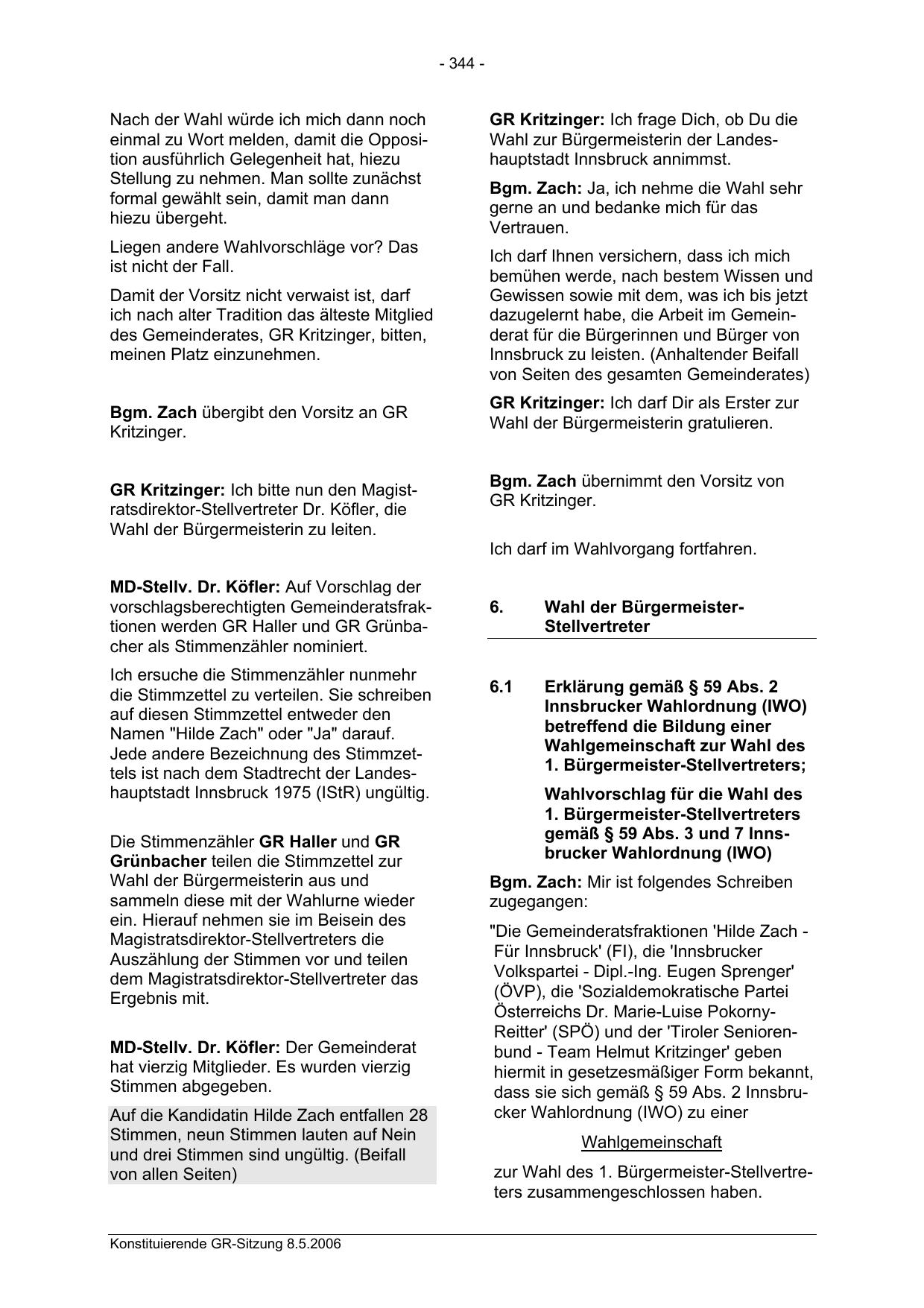 Bgm. Zach: Ja, ich nehme die Wahl sehr