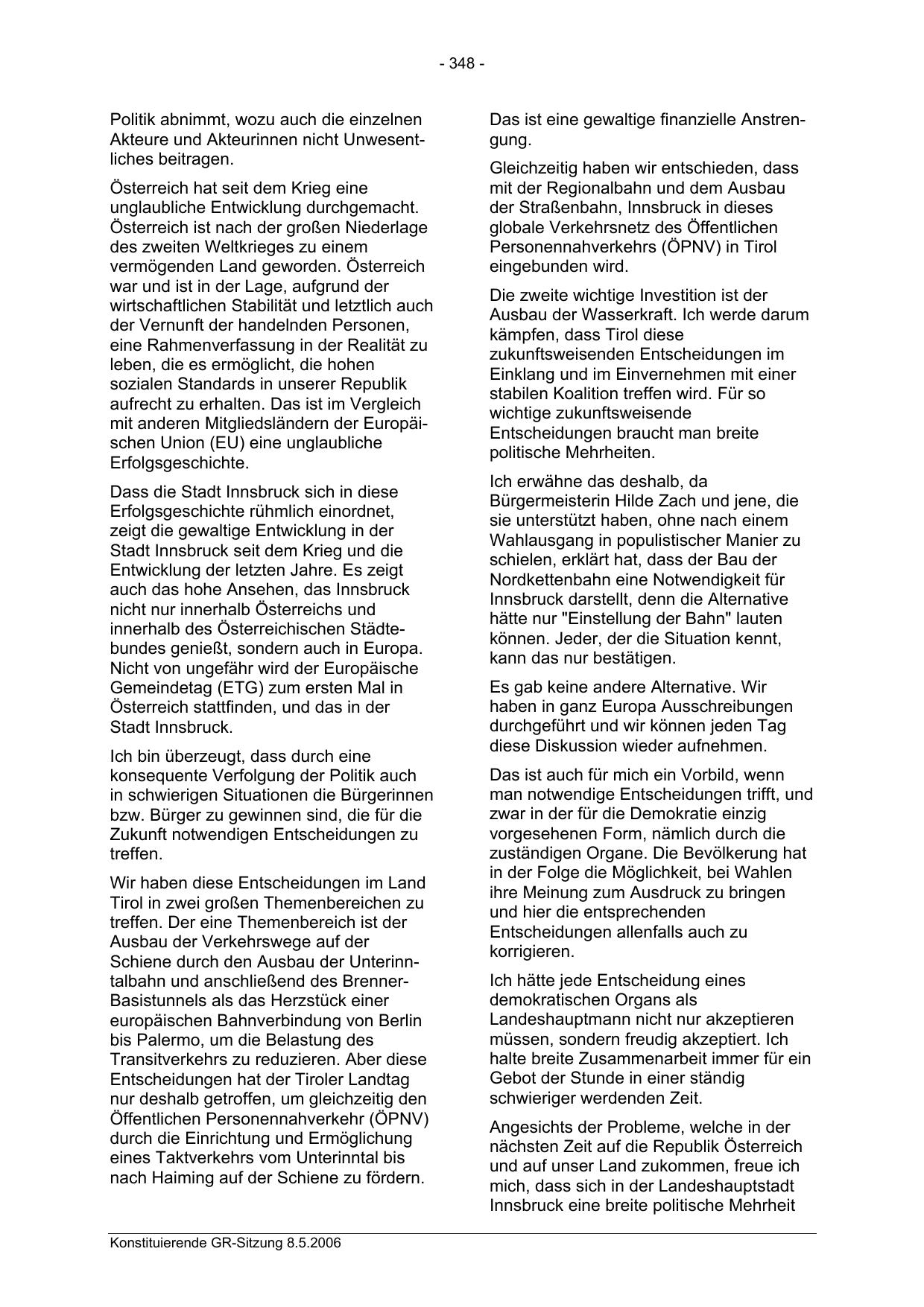Konstituierende GR-Sitzung 8.5.2006
