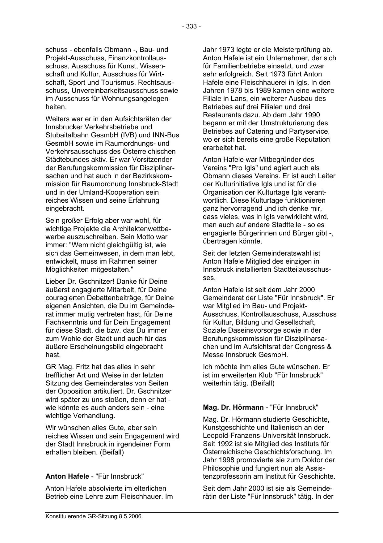 Mag. Dr. Hörmann - "Für Innsbruck"