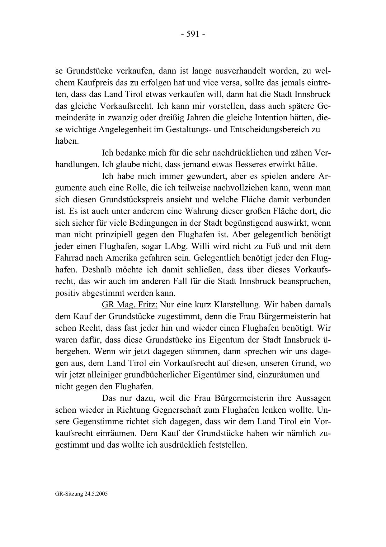 schon wieder in Richtung Gegnerschaft zum Flughafen lenken wollte. Unsere Gegenstimme richtet sich dagegen, dass wir dem Land Tirol ein Vorkaufsrecht einräumen. Dem Kauf der Grundstücke haben wir nämlich zugestimmt und das wollte ich ausdrücklich feststellen.