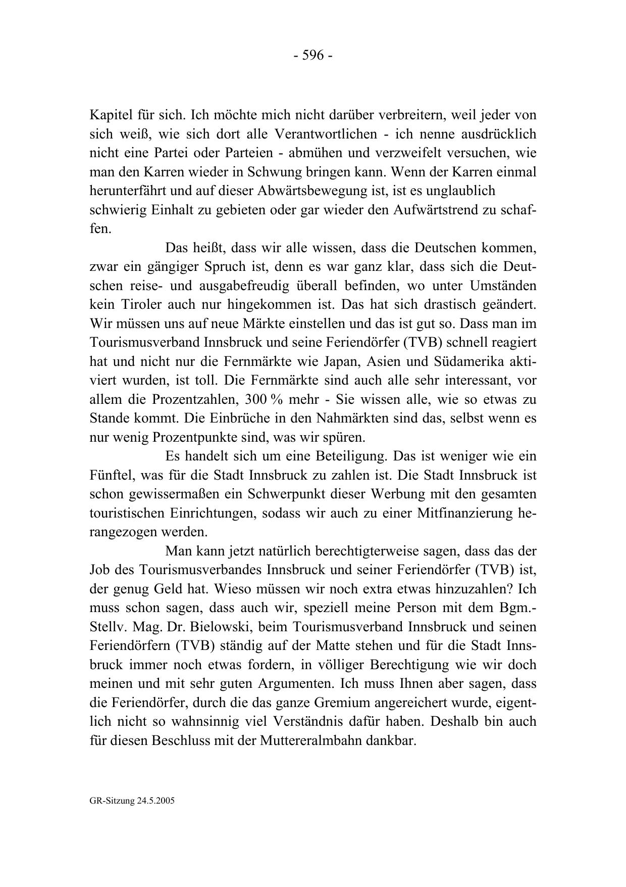 muss schon sagen, dass auch wir, speziell meine Person mit dem Bgm.Stellv. Mag. Dr. Bielowski, beim Tourismusverband Innsbruck und seinen