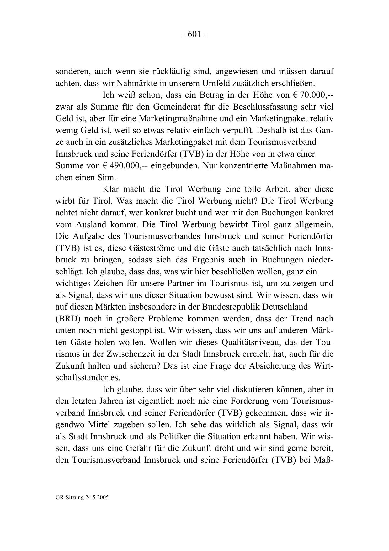 den letzten Jahren ist eigentlich noch nie eine Forderung vom Tourismusverband Innsbruck und seiner Feriendörfer (TVB) gekommen, dass wir irgendwo Mittel zugeben sollen. Ich sehe das wirklich als Signal, dass wir