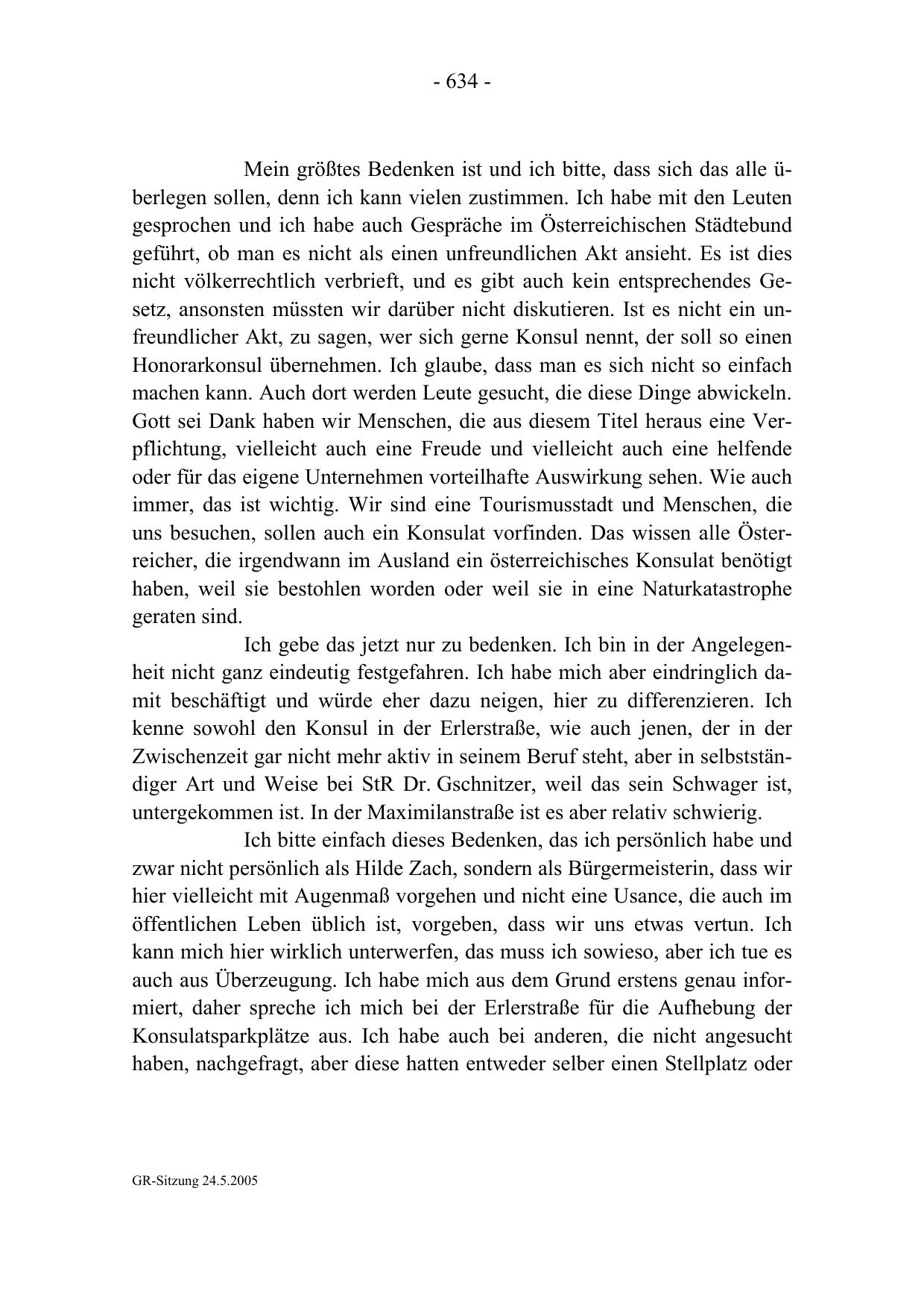 zwar nicht persönlich als Hilde Zach, sondern als Bürgermeisterin, dass wir