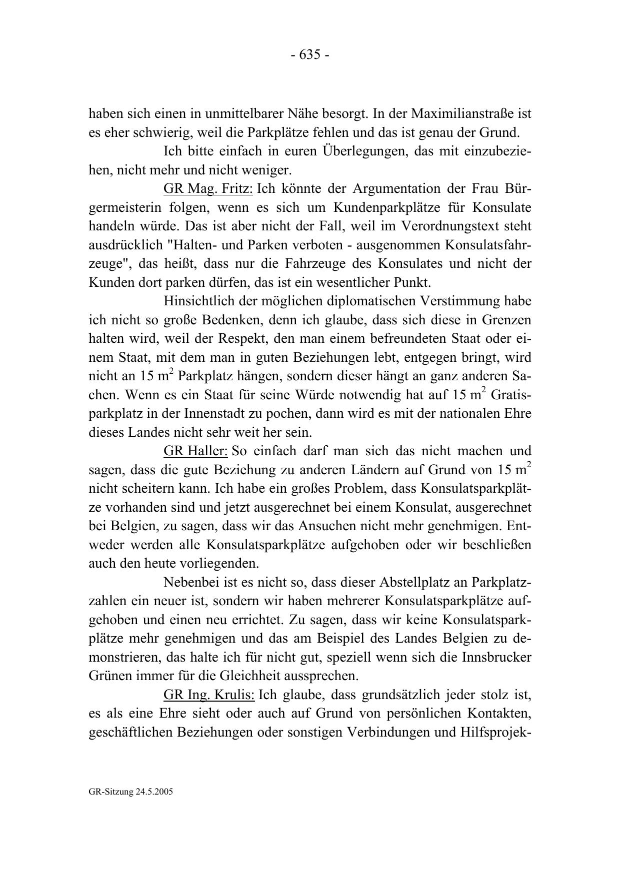Nebenbei ist es nicht so, dass dieser Abstellplatz an Parkplatzzahlen ein neuer ist, sondern wir haben mehrerer Konsulatsparkplätze aufgehoben und einen neu errichtet. Zu sagen, dass wir keine Konsulatsparkplätze mehr genehmigen und das am Beispiel des Landes Belgien zu demonstrieren, das halte ich für nicht gut, speziell wenn sich die Innsbrucker