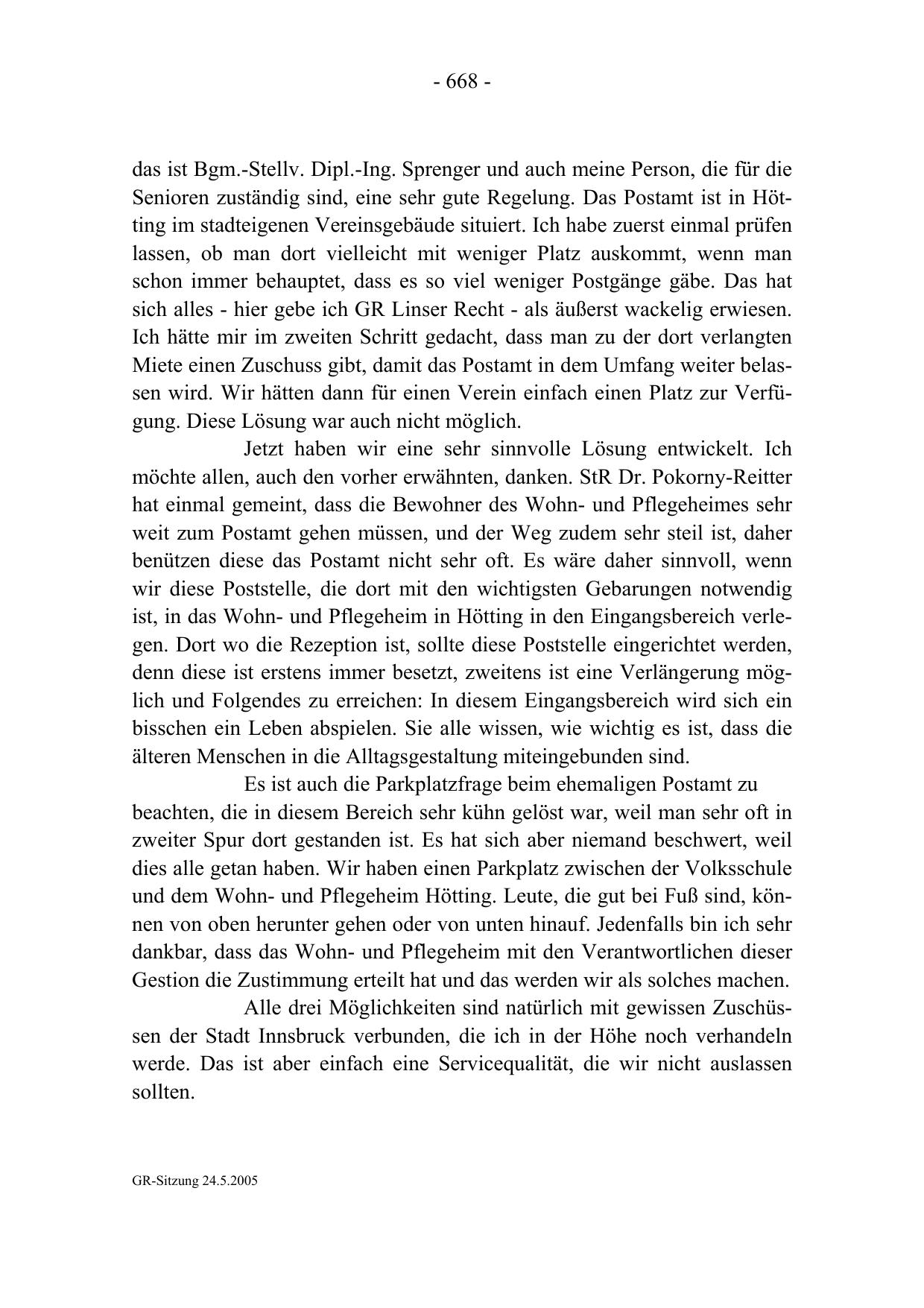 Senioren zuständig sind, eine sehr gute Regelung. Das Postamt ist in Hötting im stadteigenen Vereinsgebäude situiert. Ich habe zuerst einmal prüfen