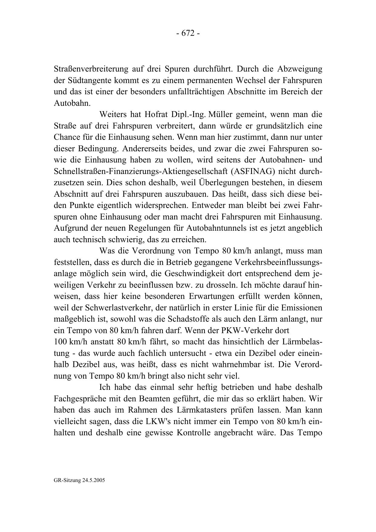 100 km/h anstatt 80 km/h fährt, so macht das hinsichtlich der Lärmbelastung - das wurde auch fachlich untersucht - etwa ein Dezibel oder eineinhalb Dezibel aus, was heißt, dass es nicht wahrnehmbar ist. Die Verordnung von Tempo 80 km/h bringt also nicht sehr viel.