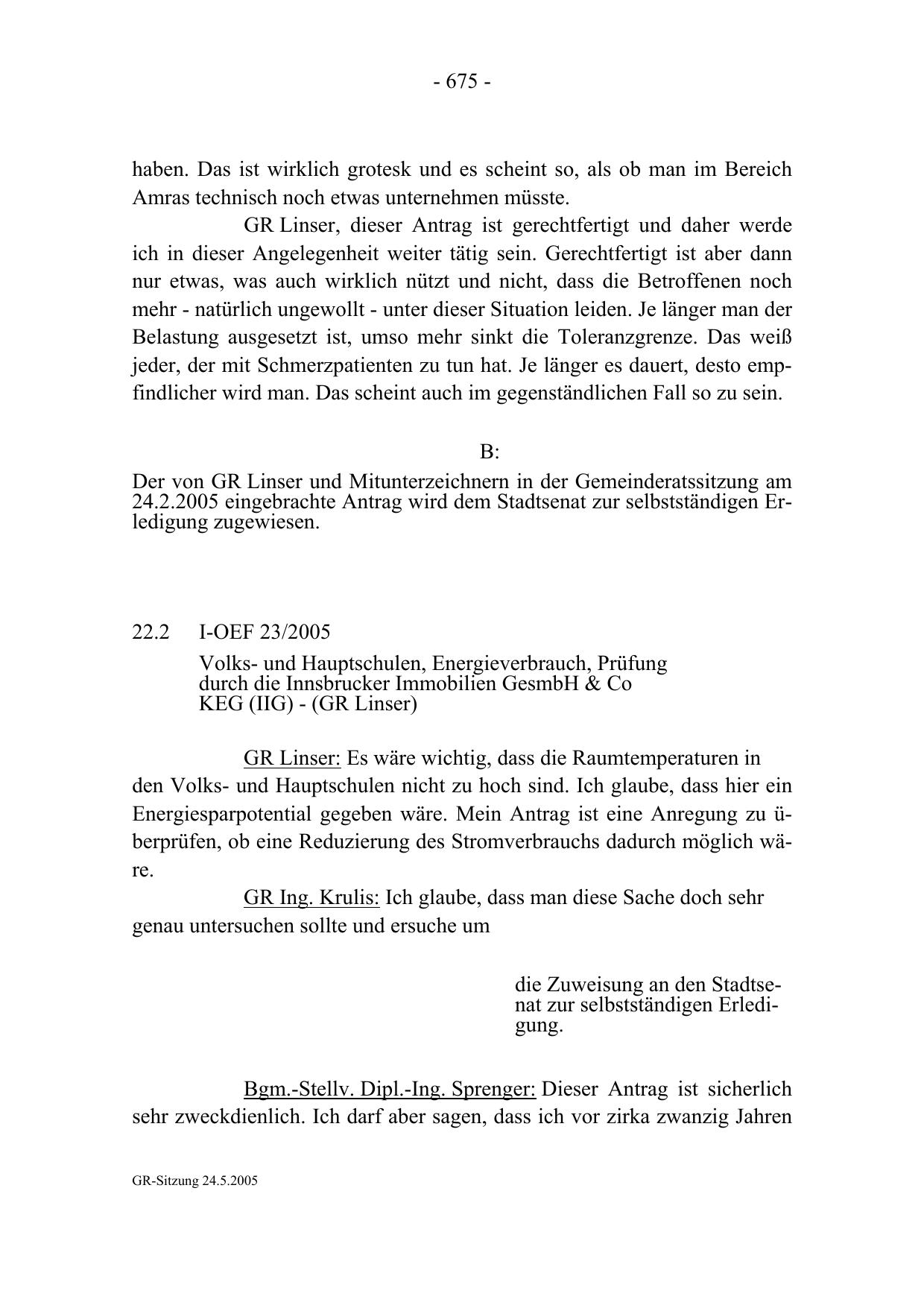 GR Linser, dieser Antrag ist gerechtfertigt und daher werde