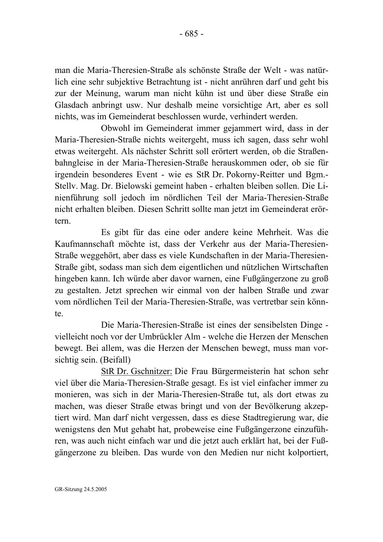irgendein besonderes Event - wie es StR Dr. Pokorny-Reitter und Bgm.Stellv. Mag. Dr. Bielowski gemeint haben - erhalten bleiben sollen. Die Linienführung soll jedoch im nördlichen Teil der Maria-Theresien-Straße