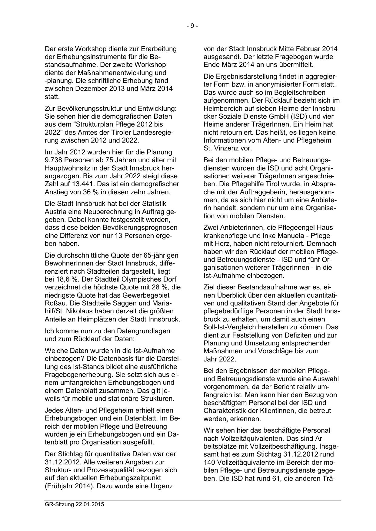 pflegebedürftige Personen in der Stadt Innsbruck zu erhalten, um damit auch einen