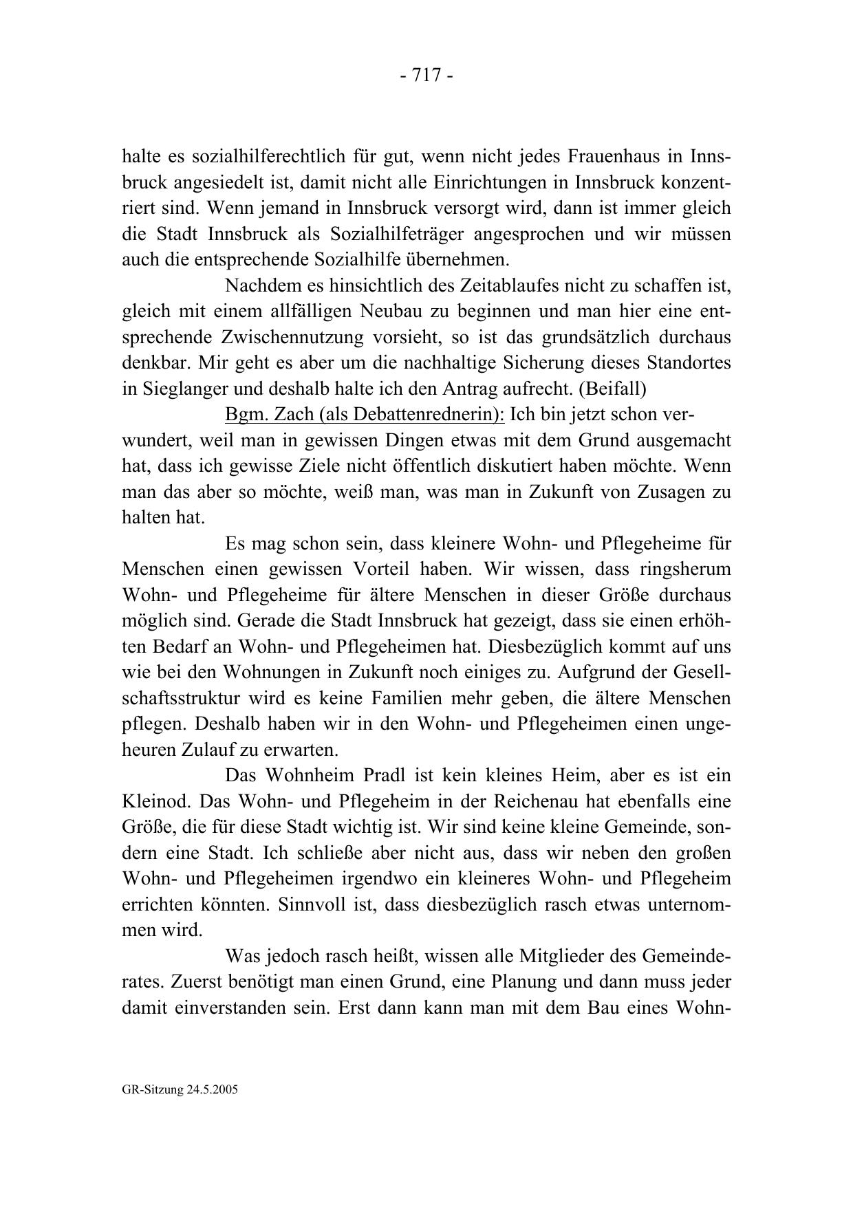Bgm. Zach (als Debattenrednerin): Ich bin jetzt schon verwundert, weil man in gewissen Dingen etwas mit dem Grund ausgemacht