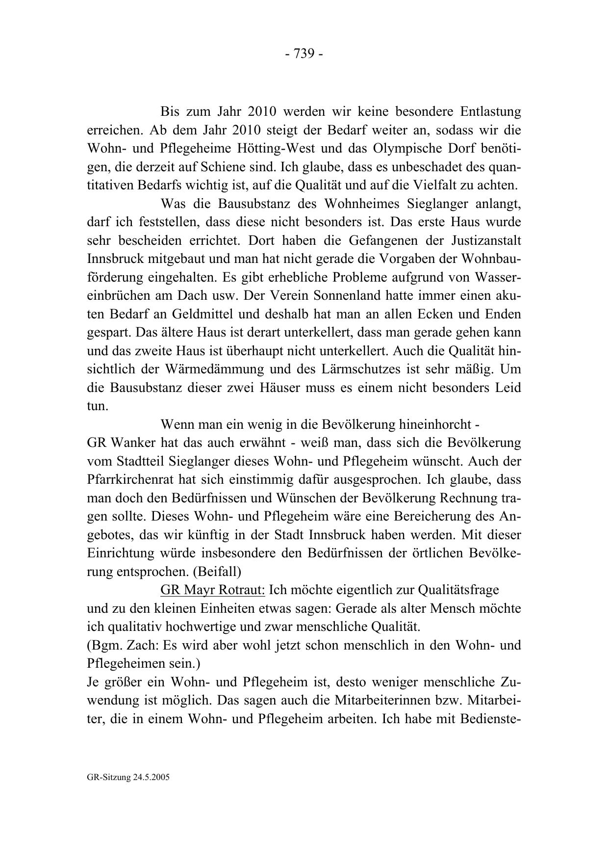 man doch den Bedürfnissen und Wünschen der Bevölkerung Rechnung tragen sollte. Dieses Wohn- und Pflegeheim wäre eine Bereicherung des Angebotes, das wir künftig in der Stadt Innsbruck haben werden. Mit dieser