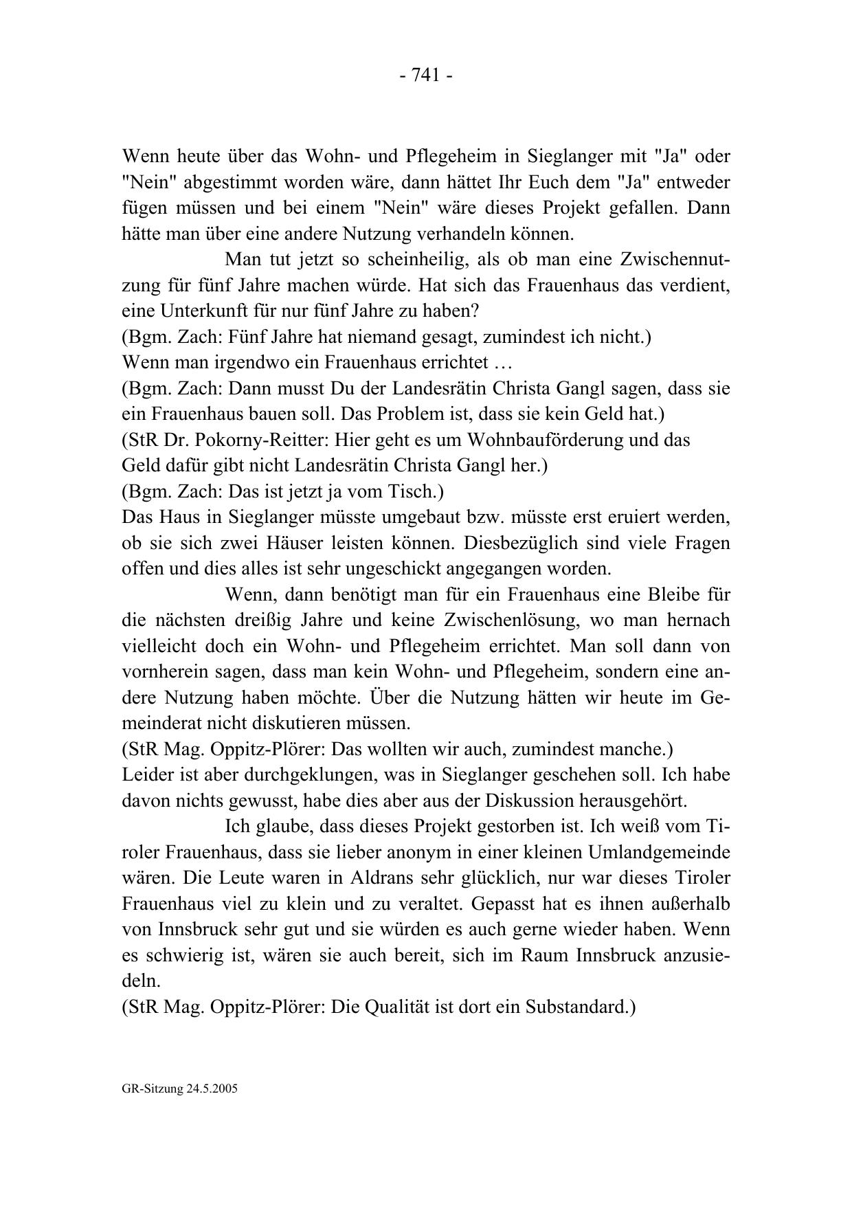 (Bgm. Zach: Dann musst Du der Landesrätin Christa Gangl sagen, dass sie
