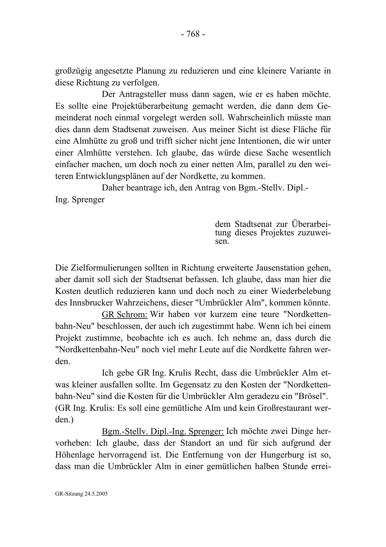 dass man die Umbrückler Alm in einer gemütlichen halben Stunde erreiGR-Sitzung 24.5.2005