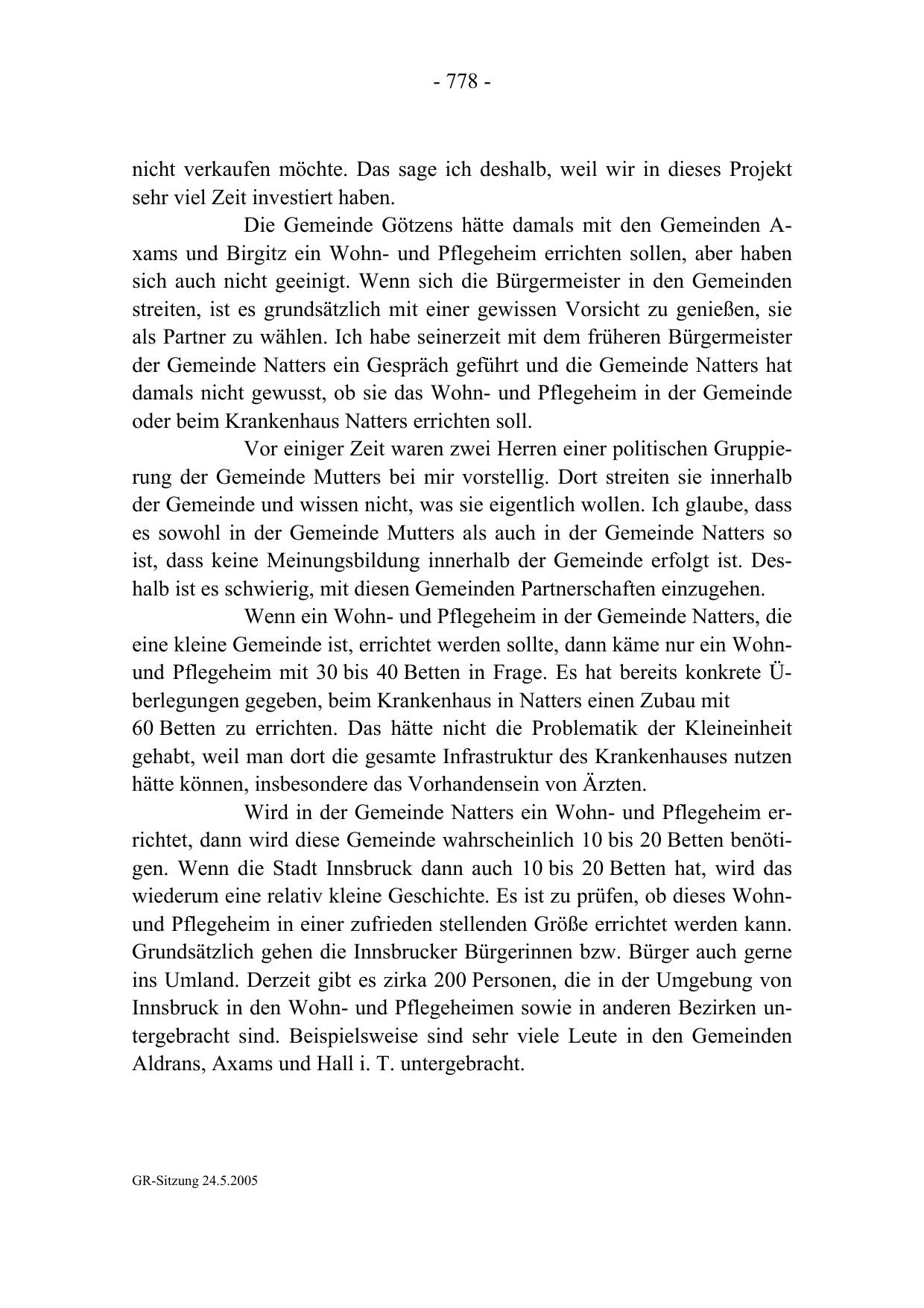 eine kleine Gemeinde ist, errichtet werden sollte, dann käme nur ein Wohnund Pflegeheim mit 30 bis 40 Betten in Frage. Es hat bereits konkrete Überlegungen gegeben, beim Krankenhaus in Natters einen Zubau mit
