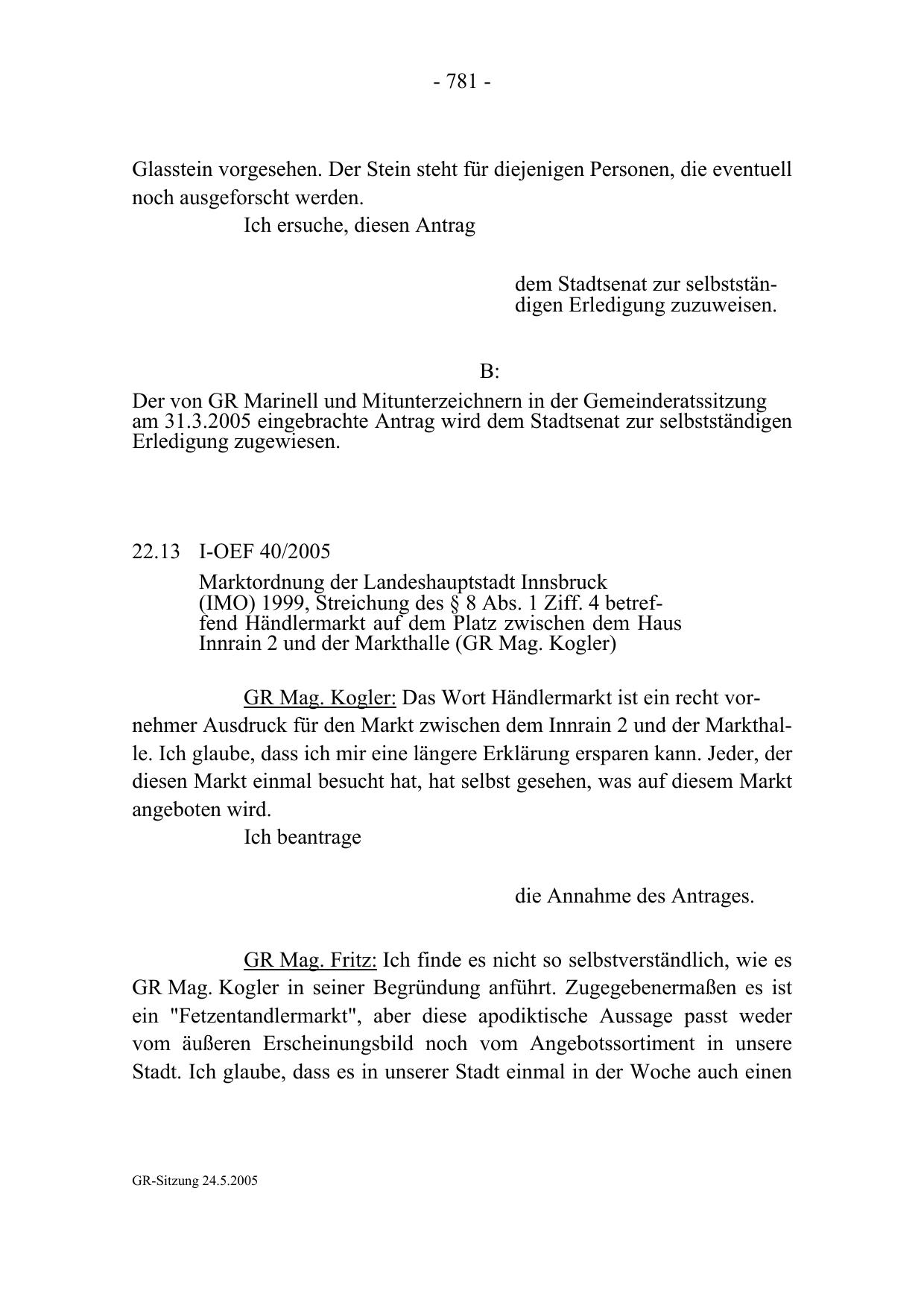 GR Mag. Kogler: Das Wort Händlermarkt ist ein recht vornehmer Ausdruck für den Markt zwischen dem Innrain 2 und der Markthalle. Ich glaube, dass ich mir eine längere Erklärung ersparen kann. Jeder, der