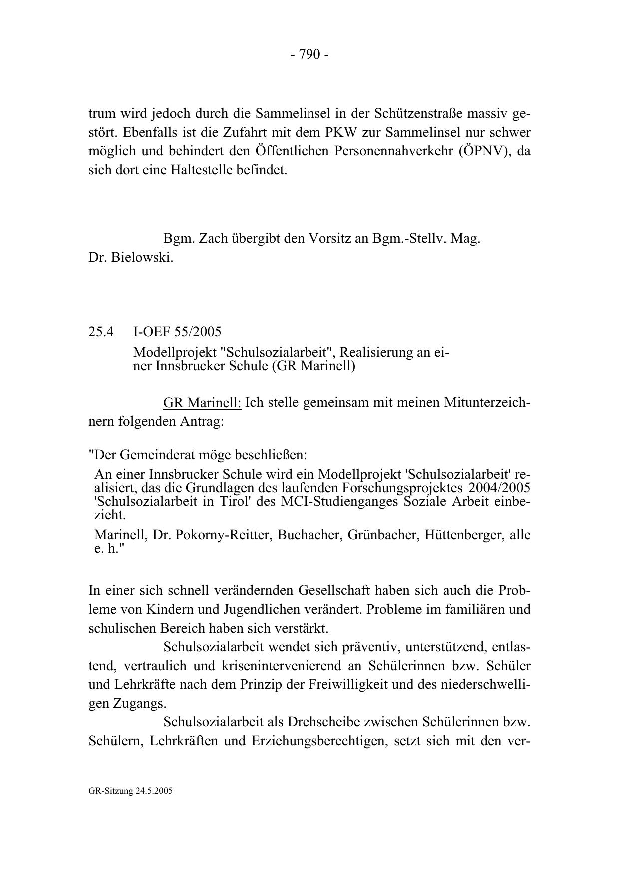 Modellprojekt "Schulsozialarbeit", Realisierung an einer Innsbrucker Schule (GR Marinell)