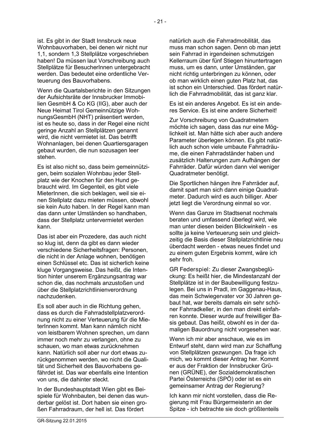 er aus der Fraktion der Innsbrucker Grünen (GRÜNE), der Sozialdemokratischen