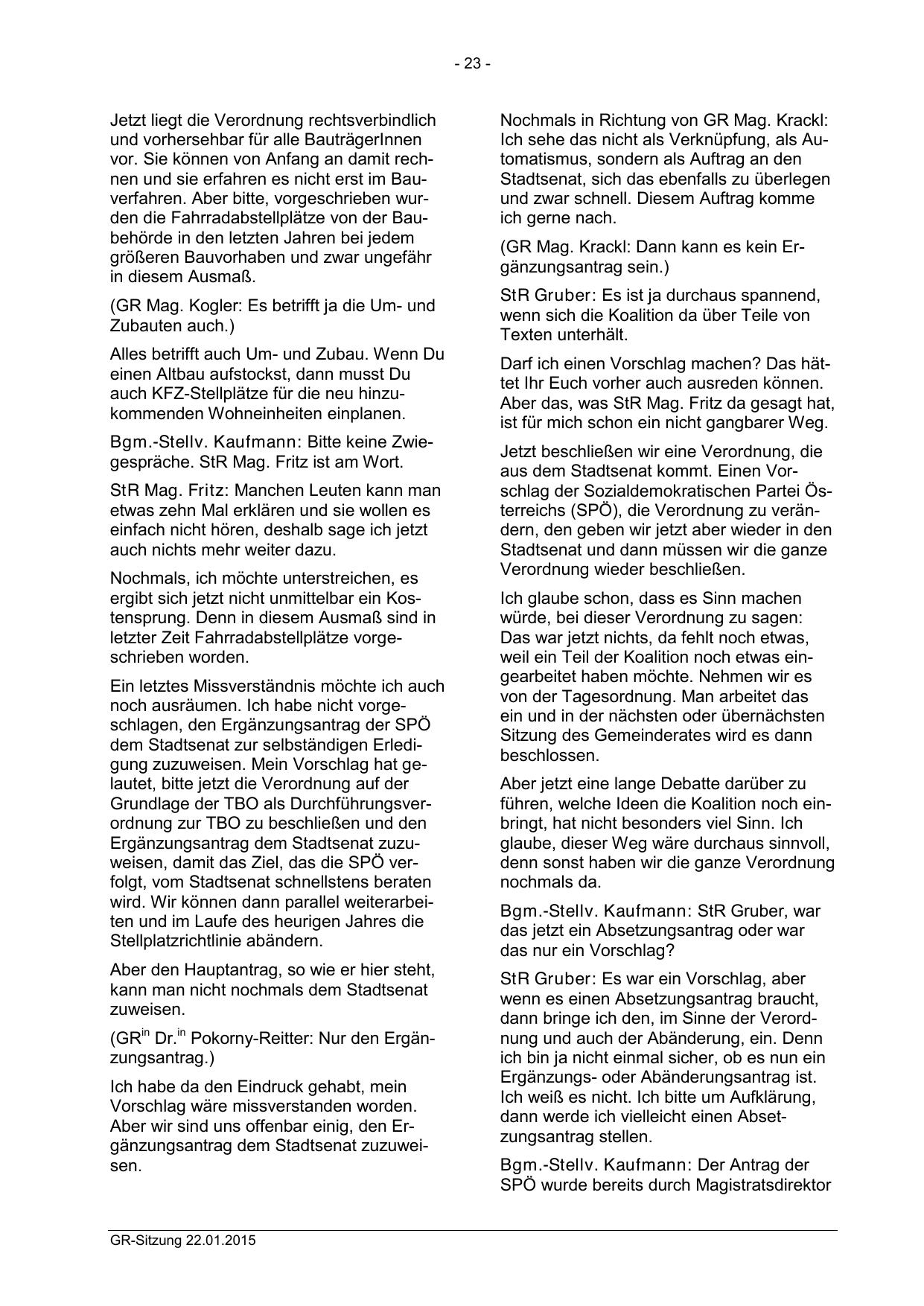 Bgm.-Stellv. Kaufmann: Bitte keine Zwiegespräche. StR Mag. Fritz ist am Wort.