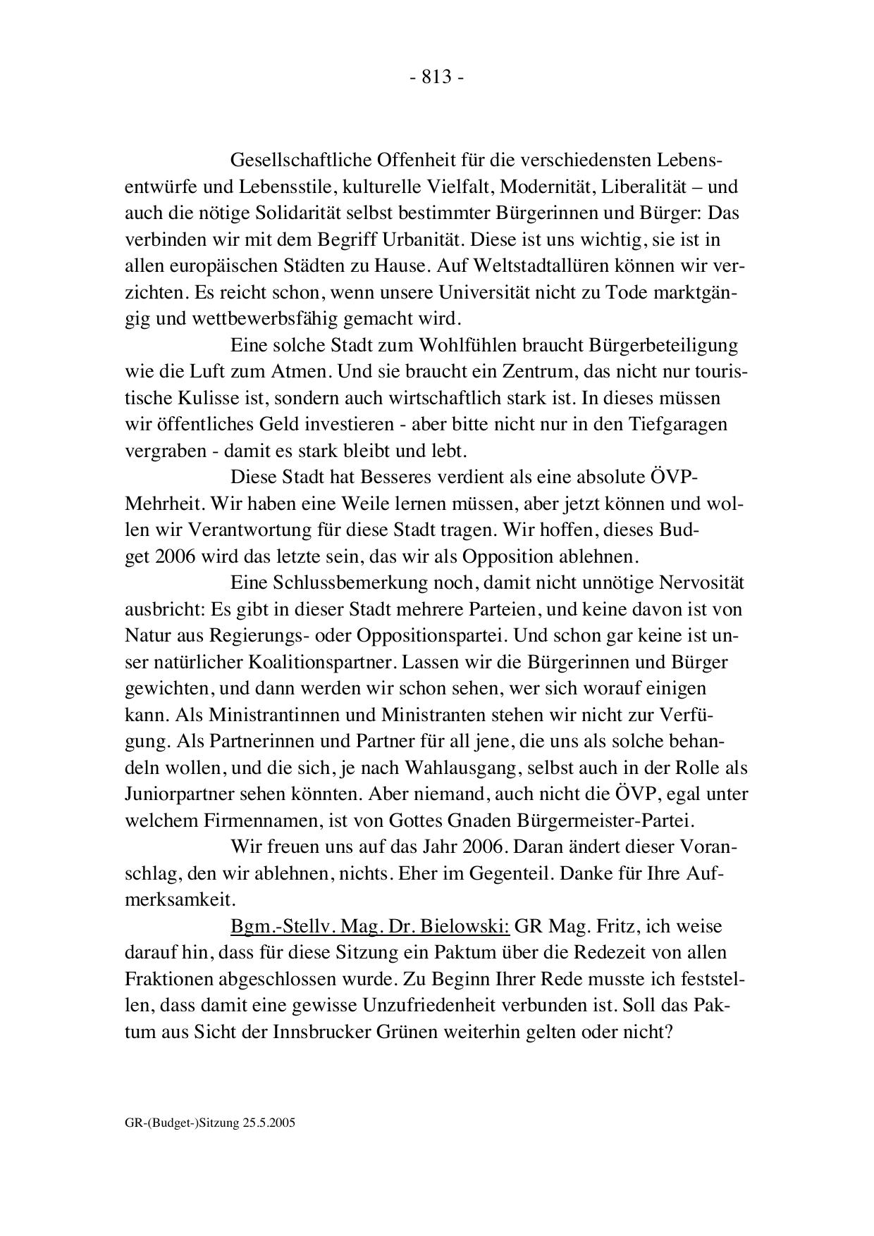 Fraktionen abgeschlossen wurde. Zu Beginn Ihrer Rede musste ich feststellen, dass damit eine gewisse Unzufriedenheit verbunden ist. Soll das Paktum aus Sicht der Innsbrucker Grünen weiterhin gelten oder nicht?