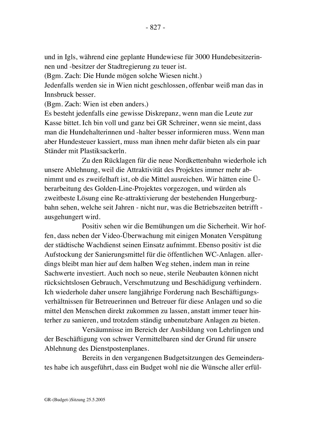 GR-(Budget-)Sitzung 25.5.2005