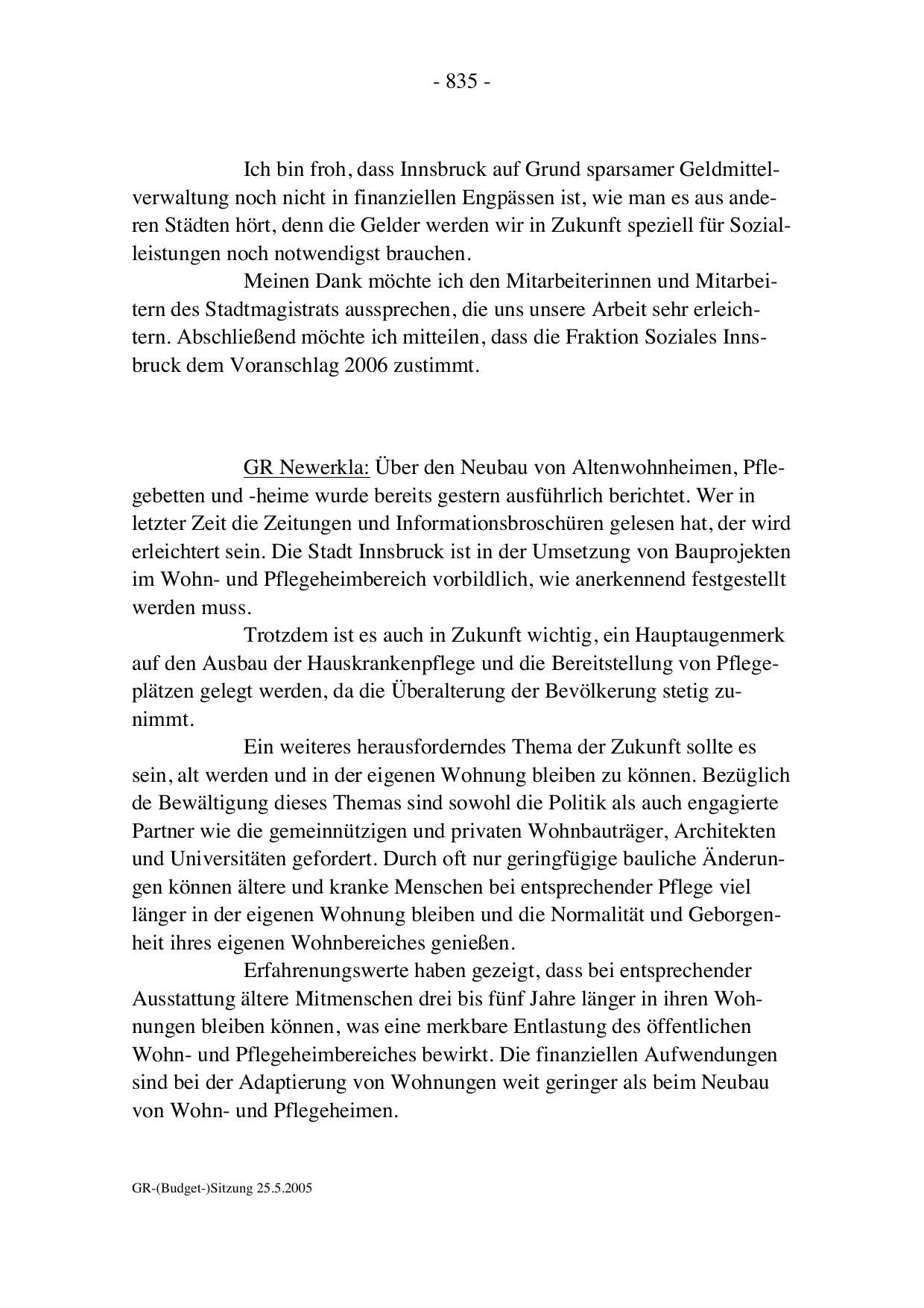 Meinen Dank möchte ich den Mitarbeiterinnen und Mitarbeitern des Stadtmagistrats aussprechen, die uns unsere Arbeit sehr erleichtern. Abschließend möchte ich mitteilen, dass die Fraktion Soziales Innsbruck dem Voranschlag 2006 zustimmt.