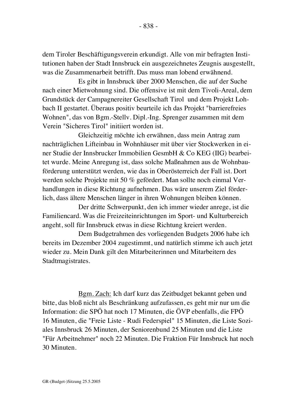 Bgm. Zach: Ich darf kurz das Zeitbudget bekannt geben und