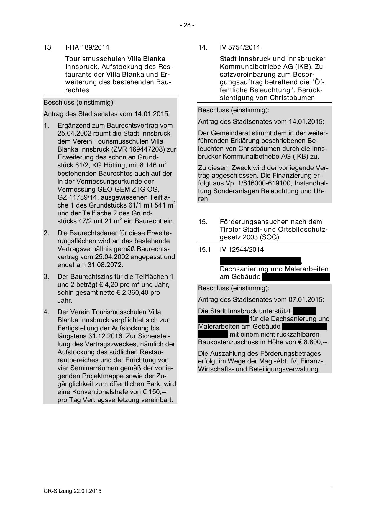 Der Gemeinderat stimmt dem in der weiterführenden Erklärung beschriebenen Beleuchten von Christbäumen durch die Innsbrucker Kommunalbetriebe AG (IKB) zu.