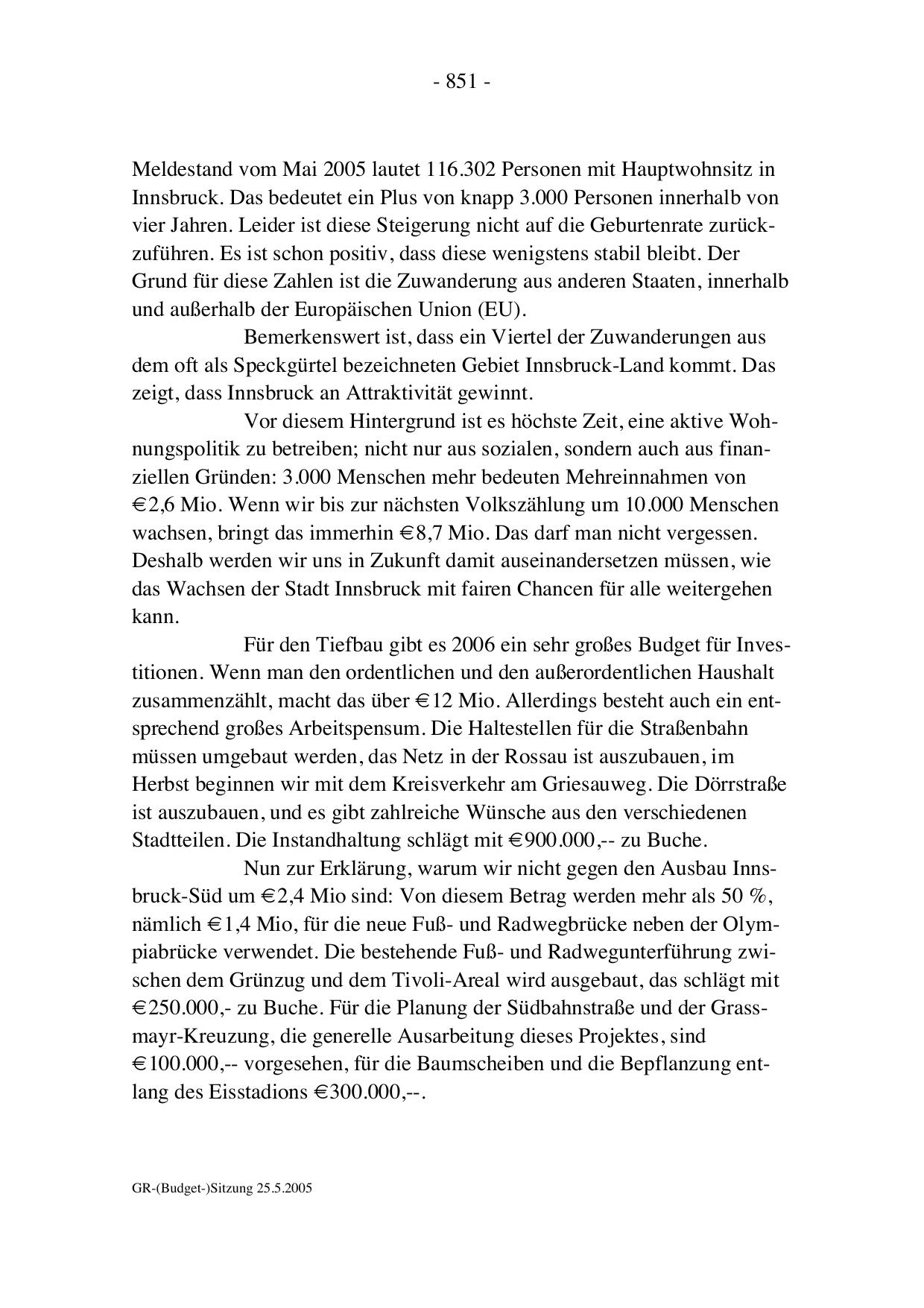 GR-(Budget-)Sitzung 25.5.2005