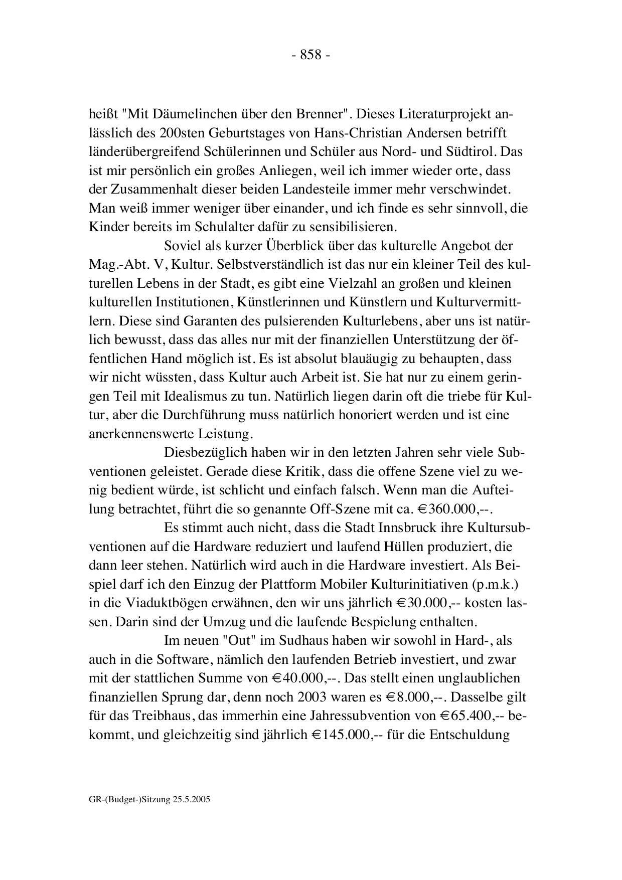 für das Treibhaus, das immerhin eine Jahressubvention von € 65.400,-- bekommt, und gleichzeitig sind jährlich € 145.000,-- für die Entschuldung