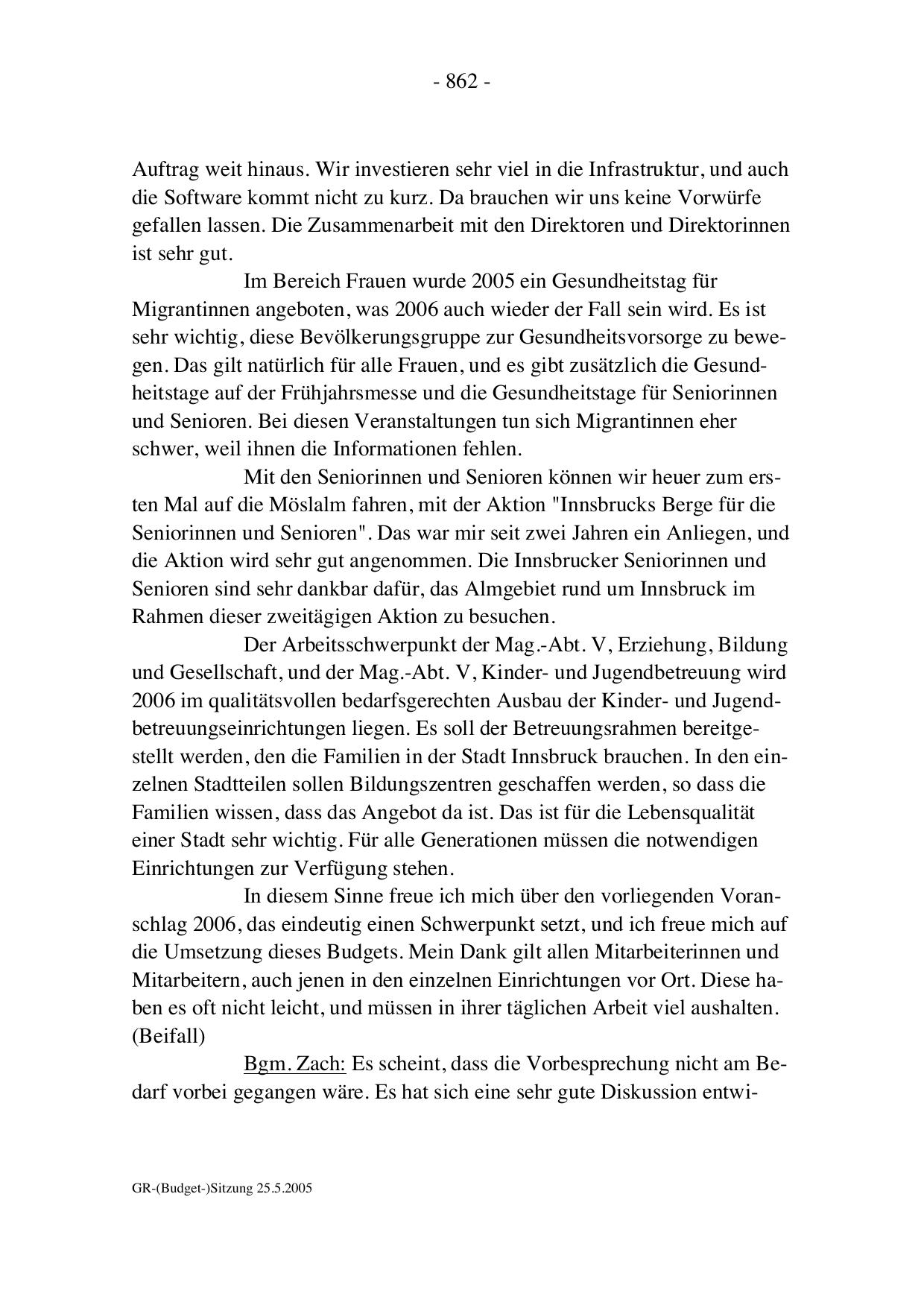 Bgm. Zach: Es scheint, dass die Vorbesprechung nicht am Bedarf vorbei gegangen wäre. Es hat sich eine sehr gute Diskussion entwi-