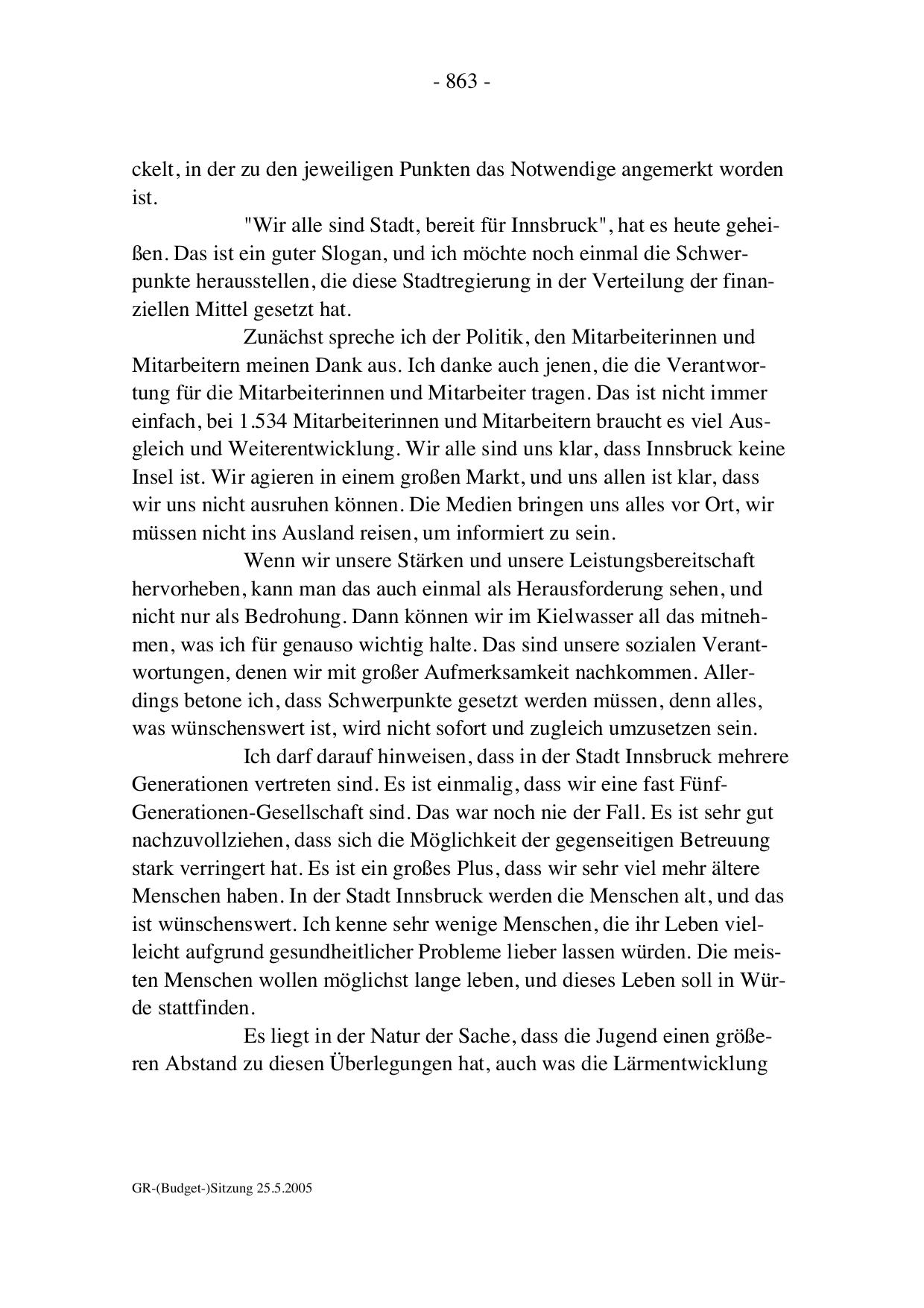"Wir alle sind Stadt, bereit für Innsbruck", hat es heute geheißen. Das ist ein guter Slogan, und ich möchte noch einmal die Schwerpunkte herausstellen, die diese Stadtregierung in der Verteilung der finanziellen Mittel gesetzt hat.