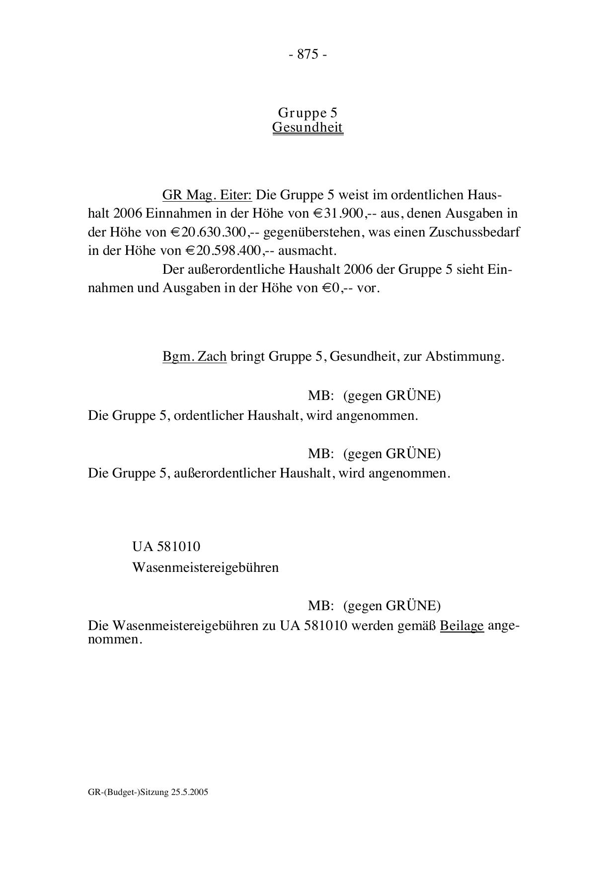 GR-(Budget-)Sitzung 25.5.2005