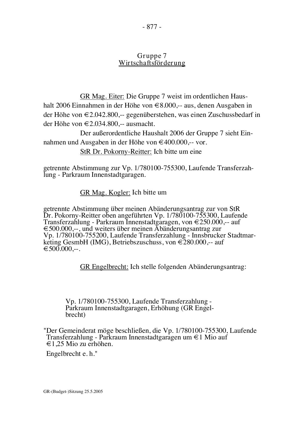 Vp. 1/780100-755300, Laufende Transferzahlung Parkraum Innenstadtgaragen, Erhöhung (GR Engelbrecht)