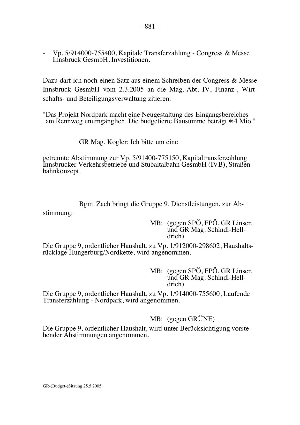 GR-(Budget-)Sitzung 25.5.2005