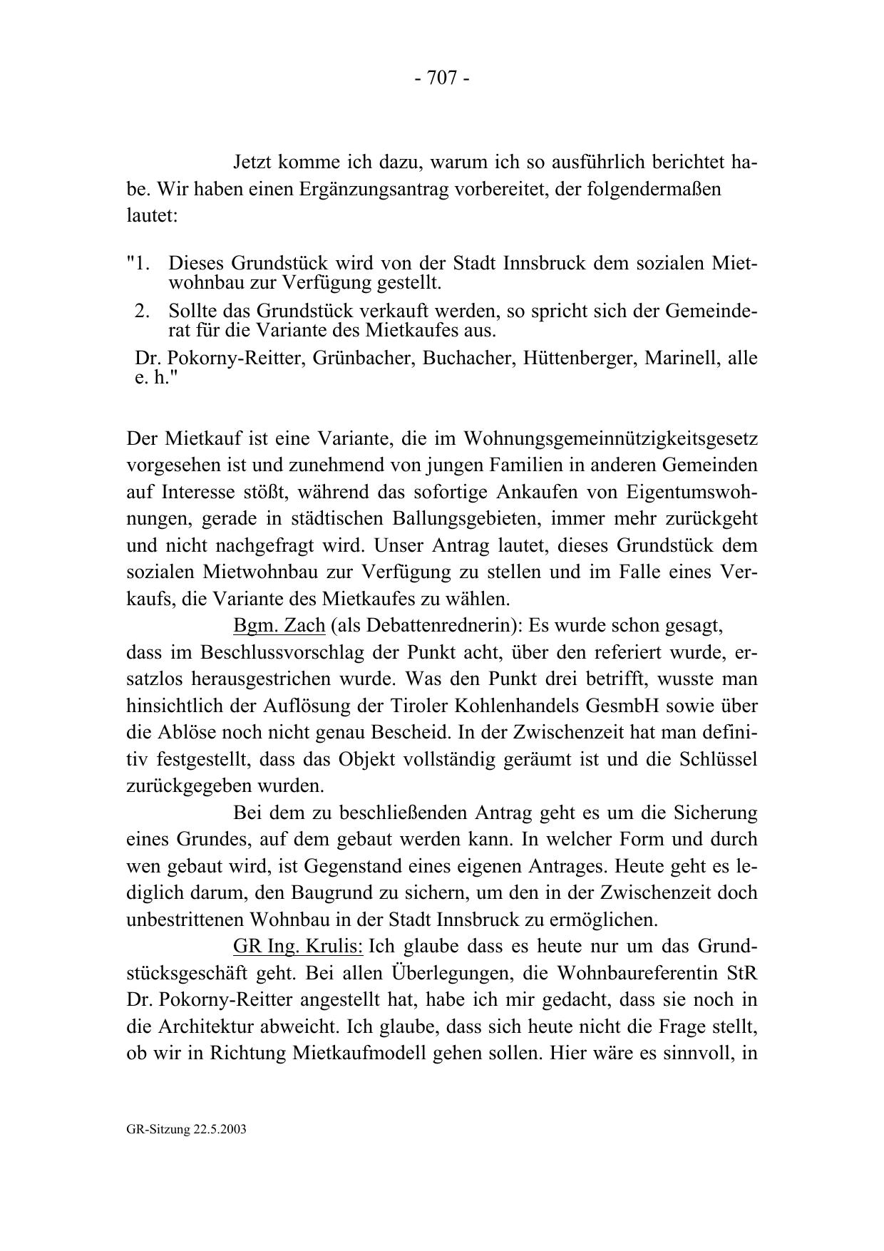 GR Ing. Krulis: Ich glaube dass es heute nur um das Grundstücksgeschäft geht. Bei allen Überlegungen, die Wohnbaureferentin StR