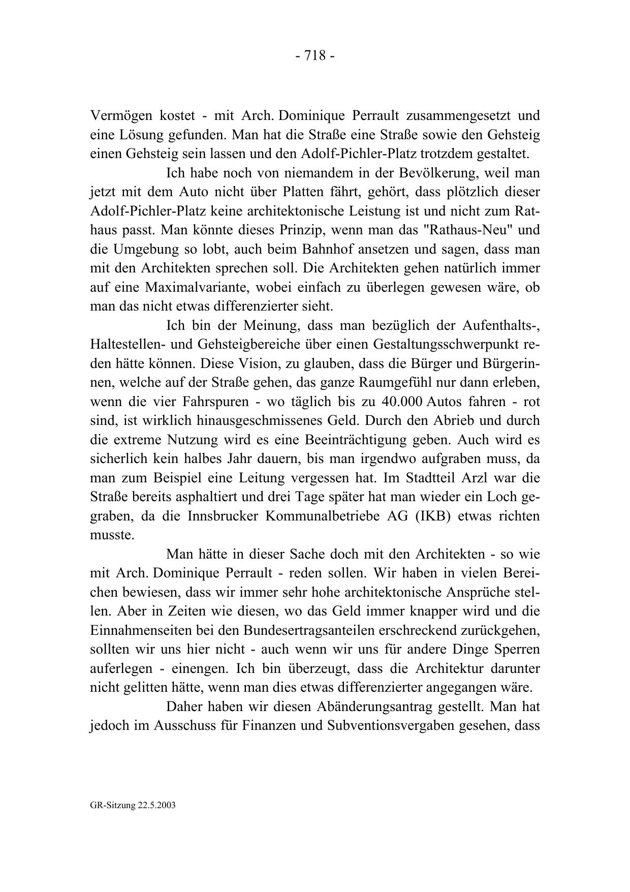 Adolf-Pichler-Platz keine architektonische Leistung ist und nicht zum Rathaus passt. Man könnte dieses Prinzip, wenn man das "Rathaus-Neu" und