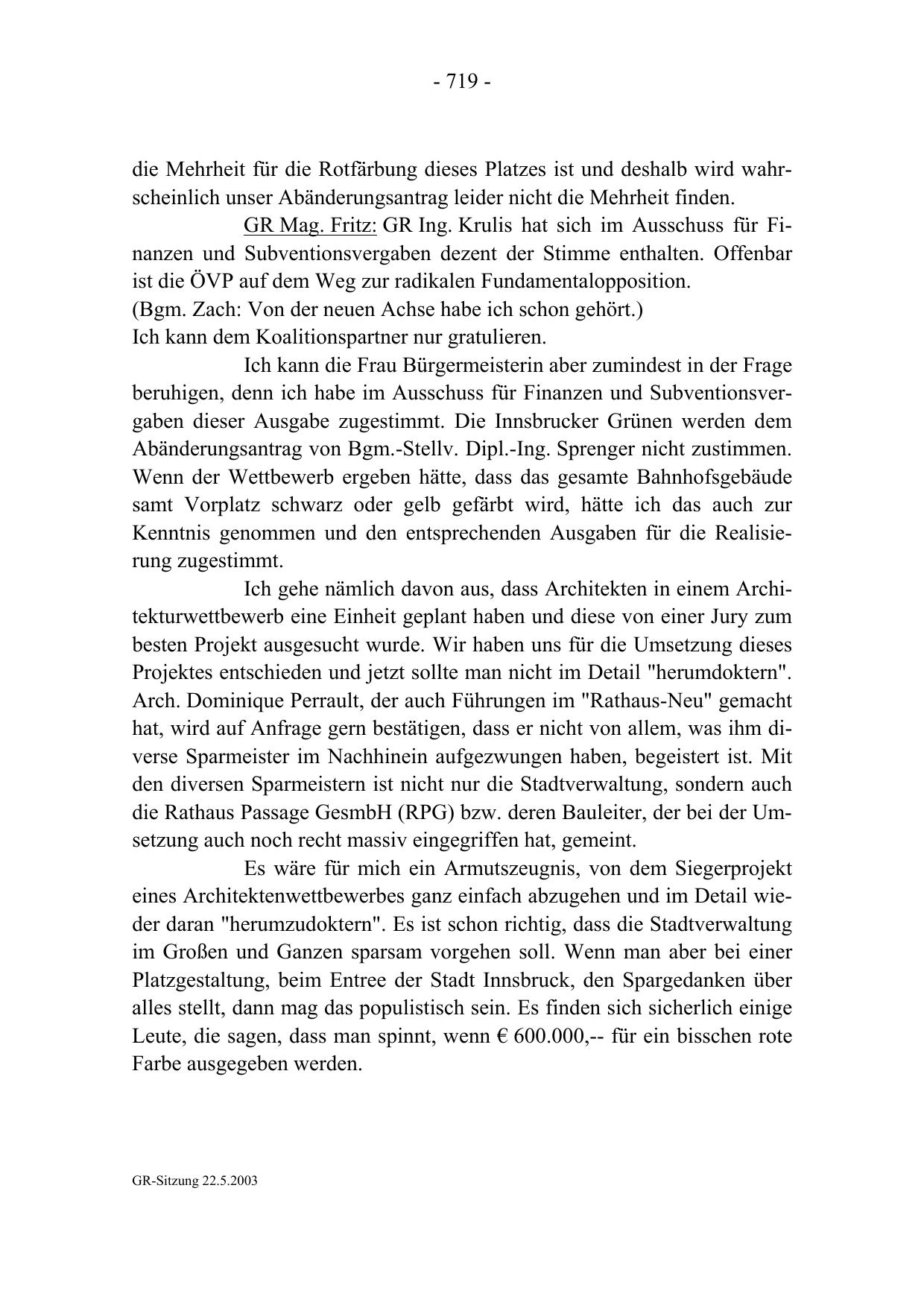 GR Mag. Fritz: GR Ing. Krulis hat sich im Ausschuss für Finanzen und Subventionsvergaben dezent der Stimme enthalten. Offenbar
