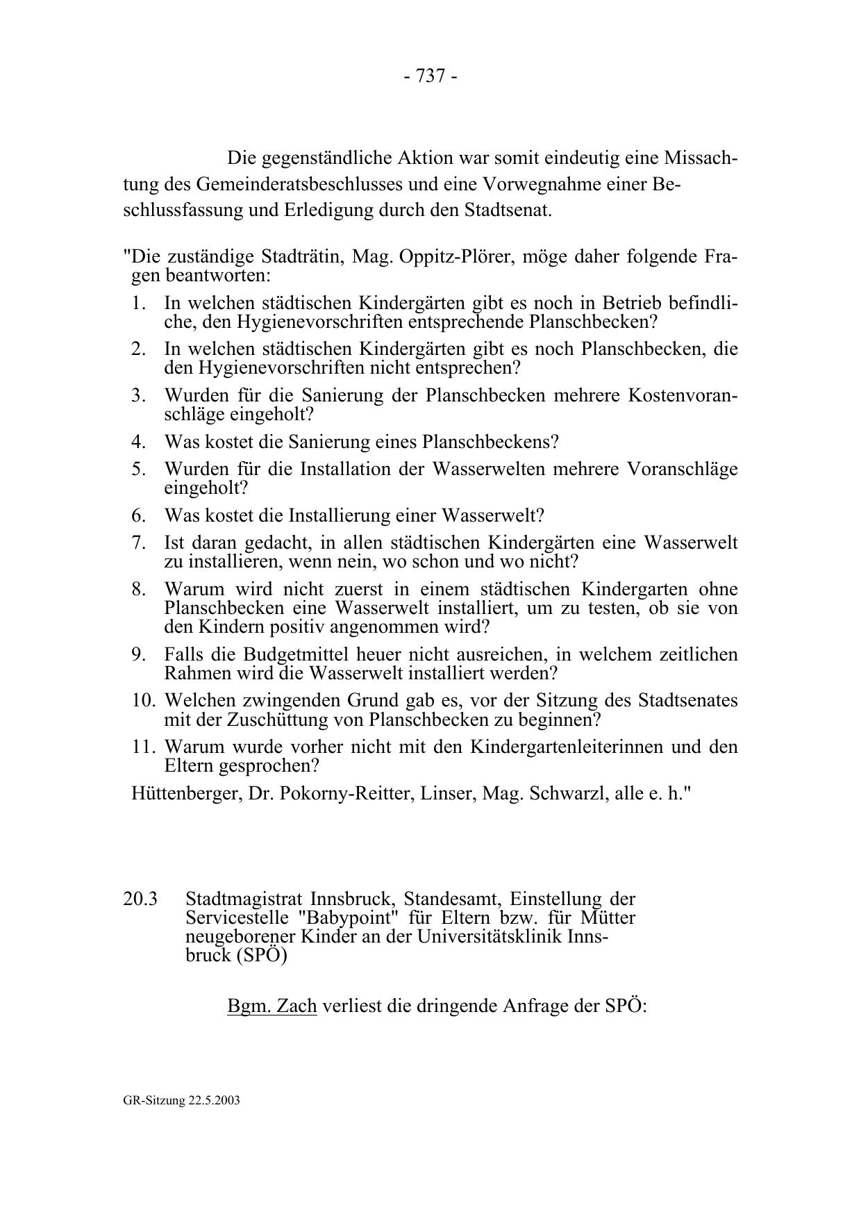 "Die zuständige Stadträtin, Mag. Oppitz-Plörer, möge daher folgende Fragen beantworten:
