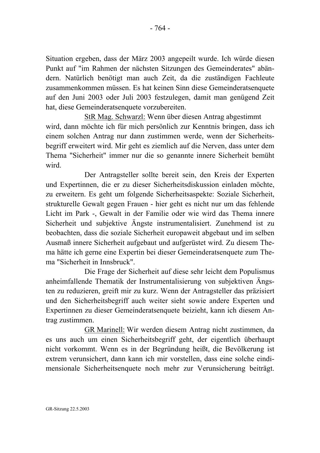 Ausmaß innere Sicherheit aufgebaut und aufgerüstet wird. Zu diesem Thema hätte ich gerne eine Expertin bei dieser Gemeinderatsenquete zum Thema "Sicherheit in Innsbruck".