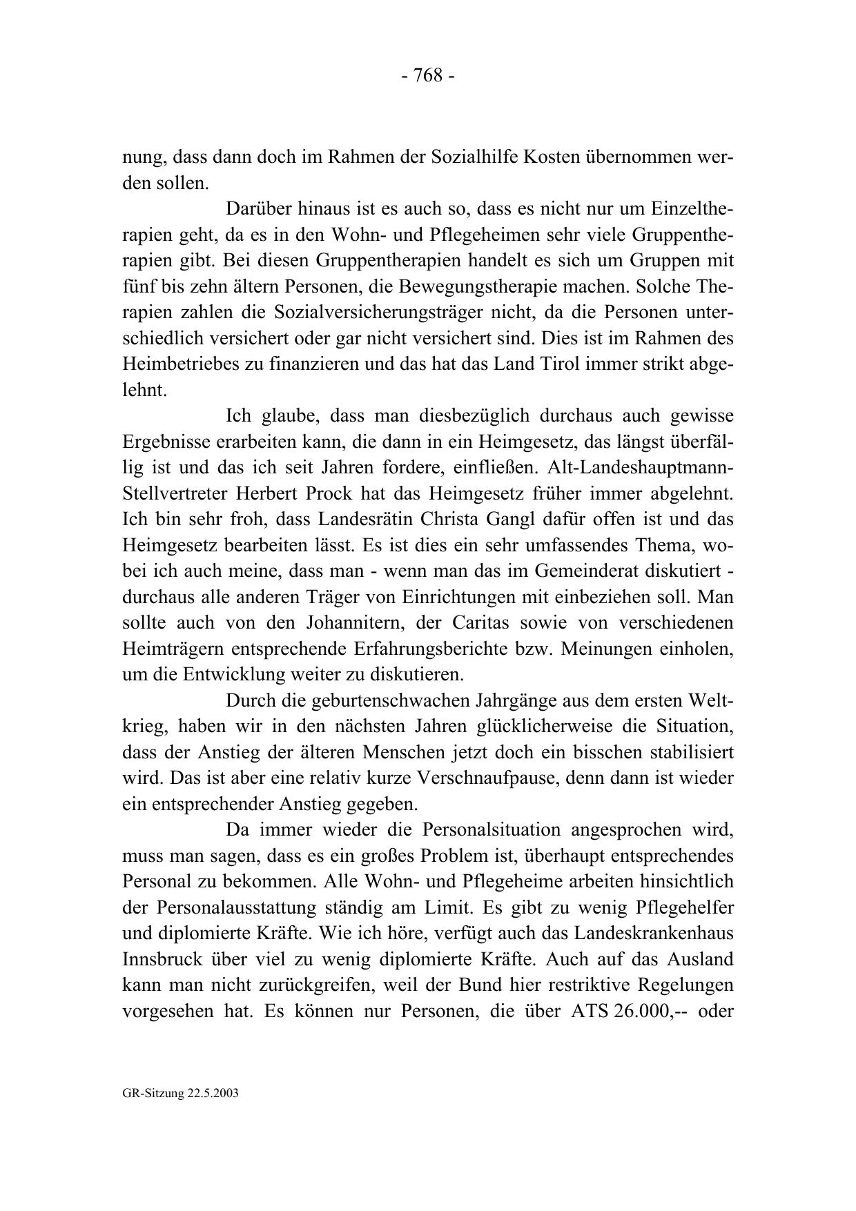 Heimgesetz bearbeiten lässt. Es ist dies ein sehr umfassendes Thema, wobei ich auch meine, dass man - wenn man das im Gemeinderat diskutiert durchaus alle anderen Träger von Einrichtungen mit einbeziehen soll. Man