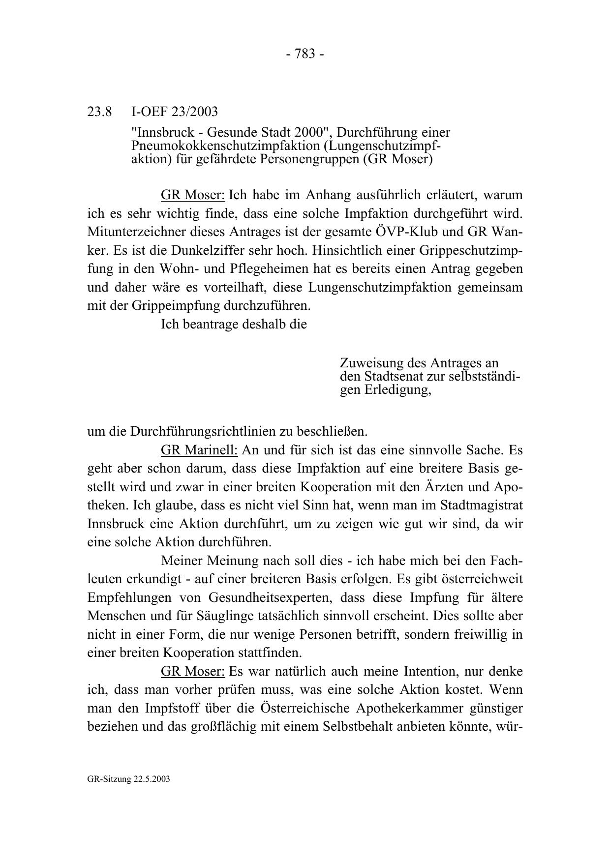 GR Moser: Es war natürlich auch meine Intention, nur denke
