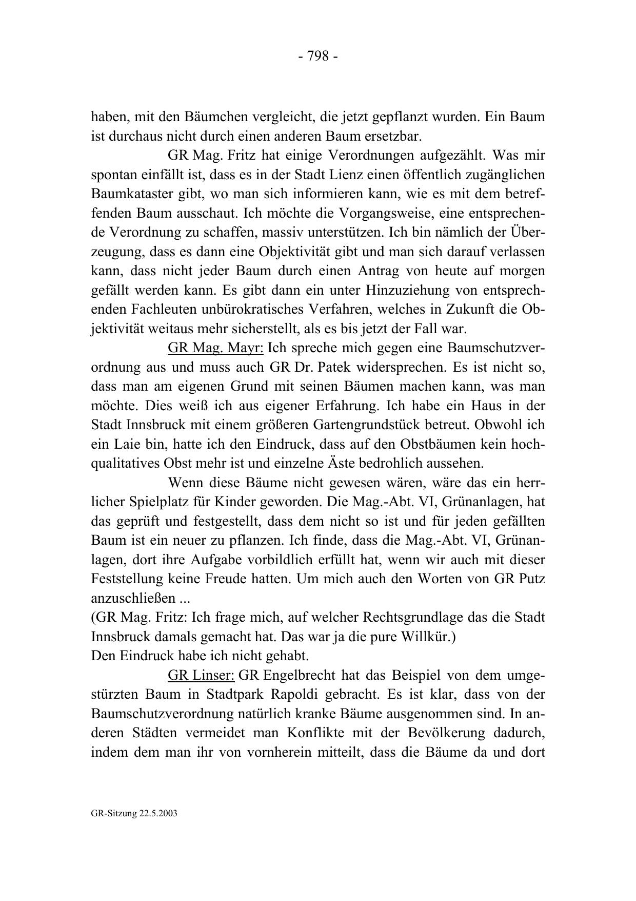 GR-Sitzung 22.5.2003