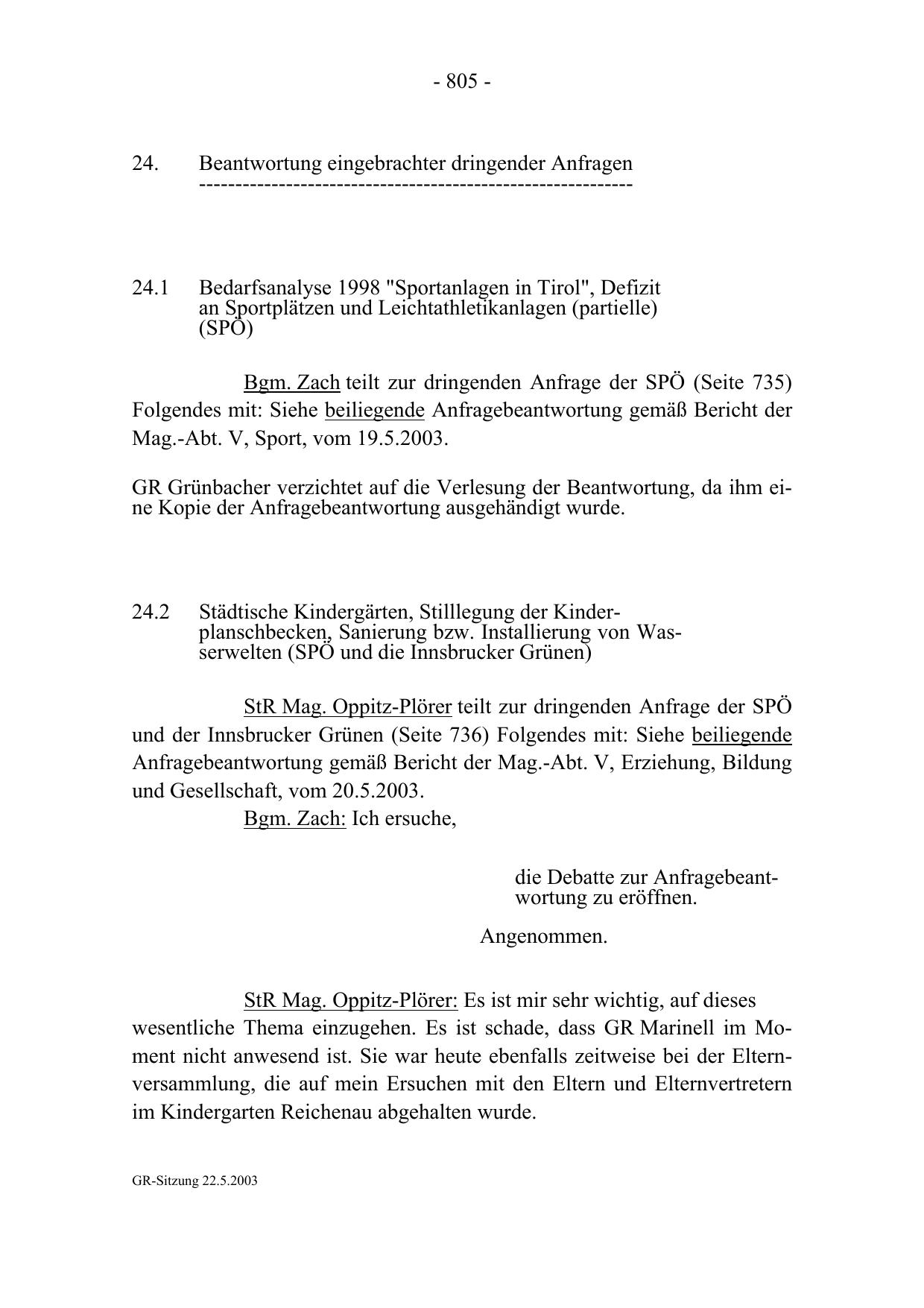GR-Sitzung 22.5.2003