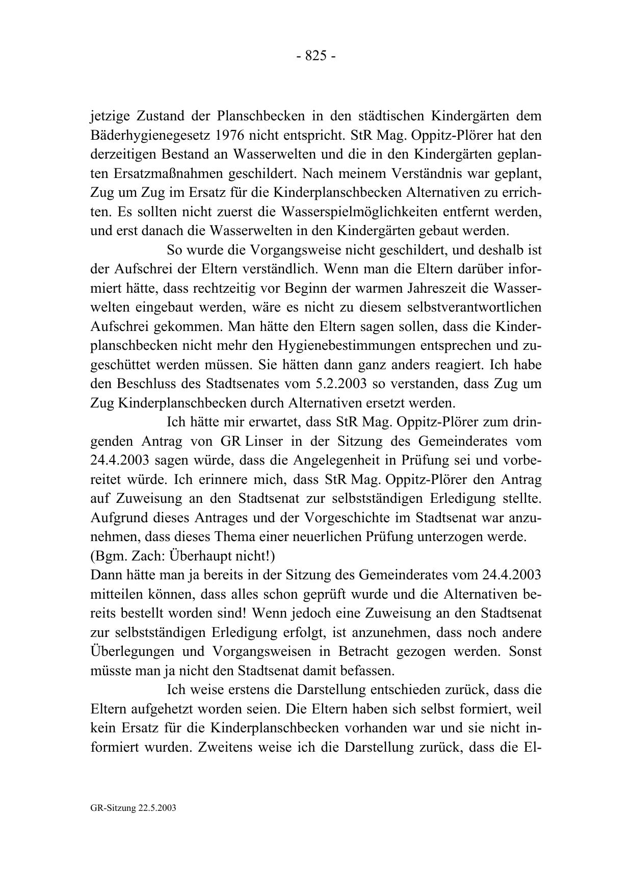 24.4.2003 sagen würde, dass die Angelegenheit in Prüfung sei und vorbereitet würde. Ich erinnere mich, dass StR Mag. Oppitz-Plörer den Antrag