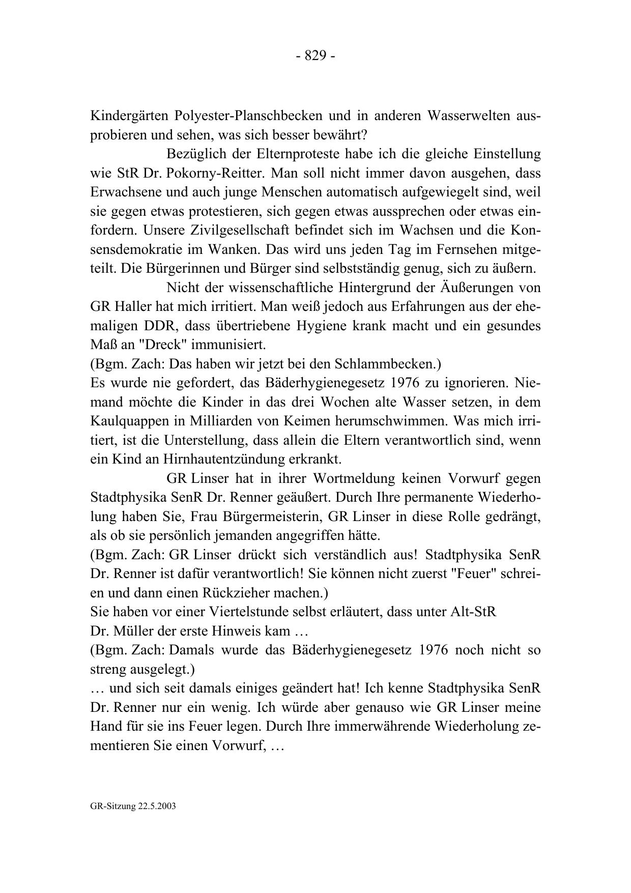 Stadtphysika SenR Dr. Renner geäußert. Durch Ihre permanente Wiederholung haben Sie, Frau Bürgermeisterin, GR Linser in diese Rolle gedrängt,