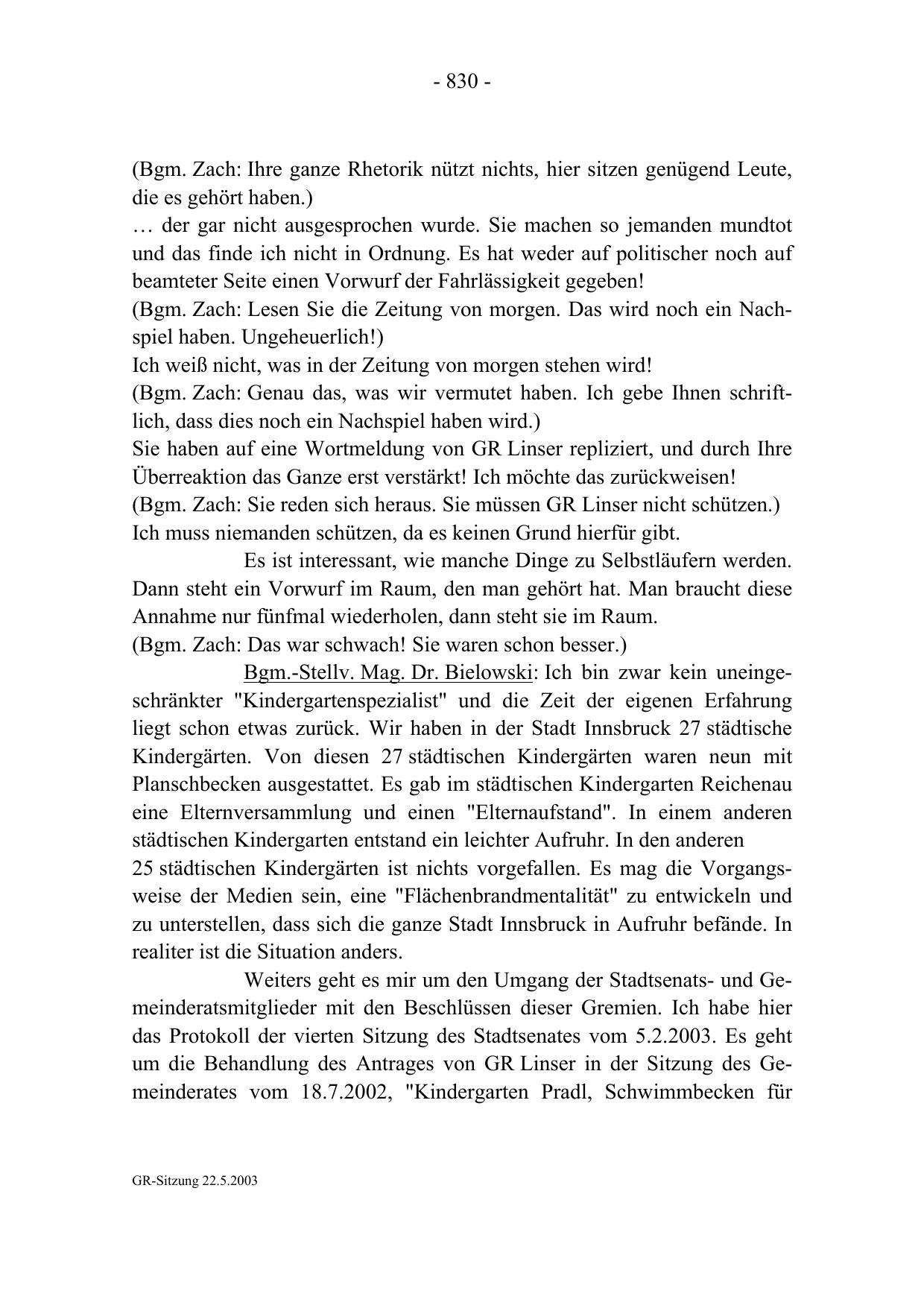 (Bgm. Zach: Sie reden sich heraus. Sie müssen GR Linser nicht schützen.)
