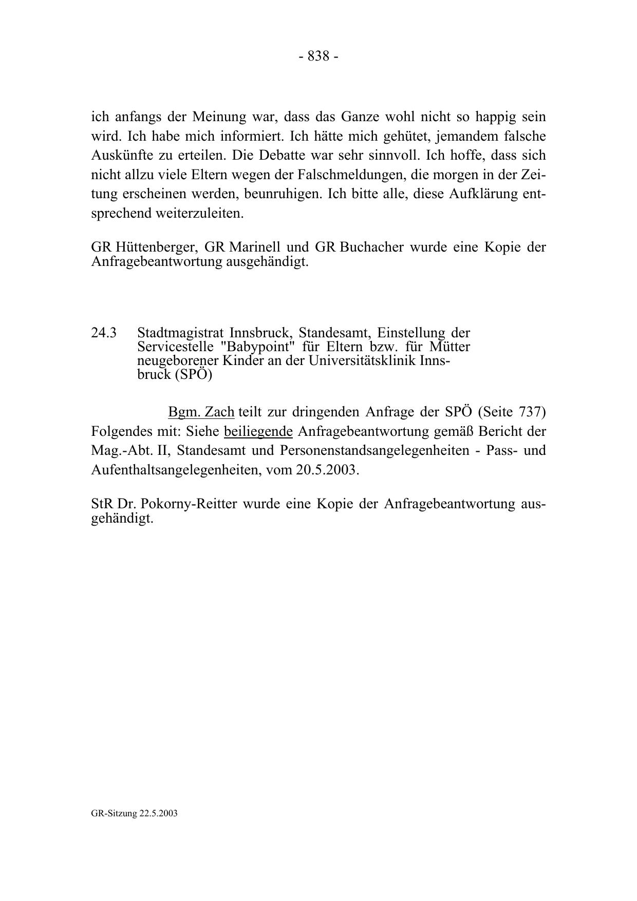 Bgm. Zach teilt zur dringenden Anfrage der SPÖ (Seite 737)