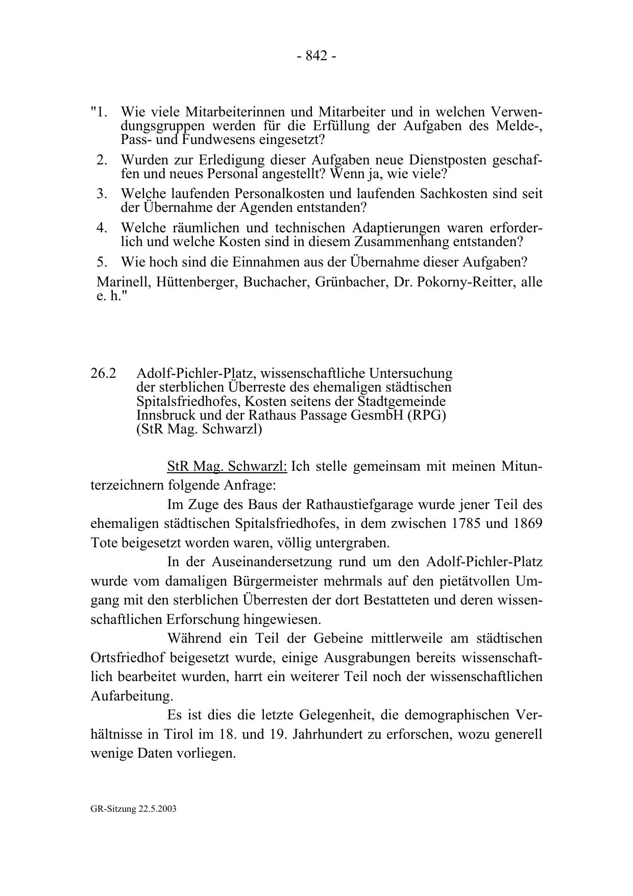 wurde vom damaligen Bürgermeister mehrmals auf den pietätvollen Umgang mit den sterblichen Überresten der dort Bestatteten und deren wissenschaftlichen Erforschung hingewiesen.